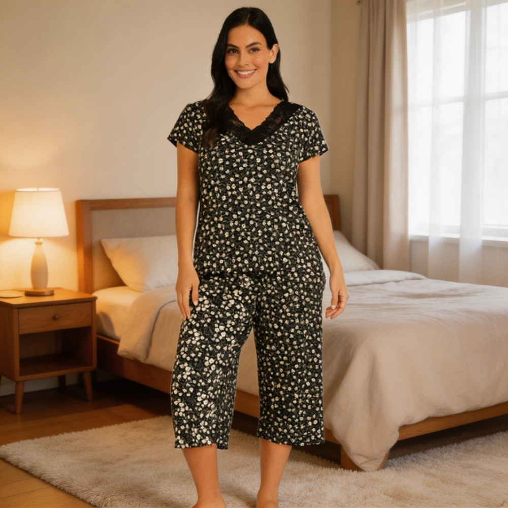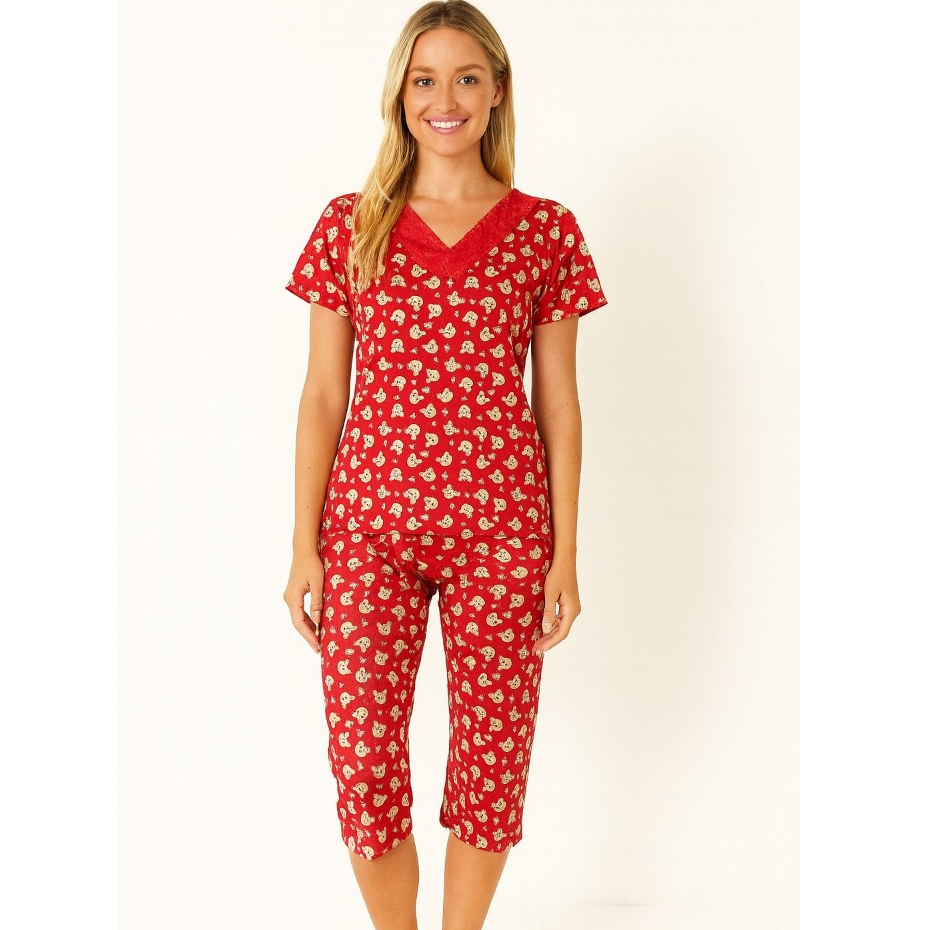 Pijama Pescador Feminino Adulto Manga Curta E Calça Para Dormir Conforto