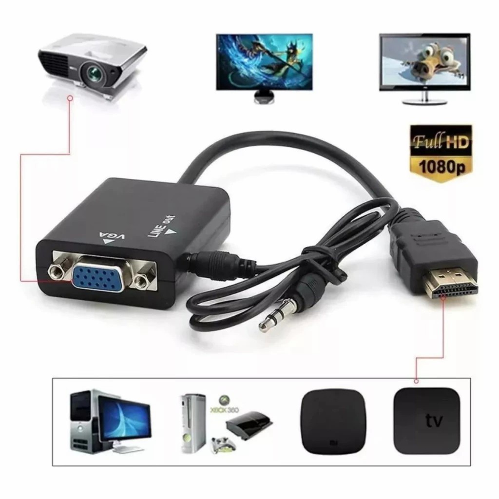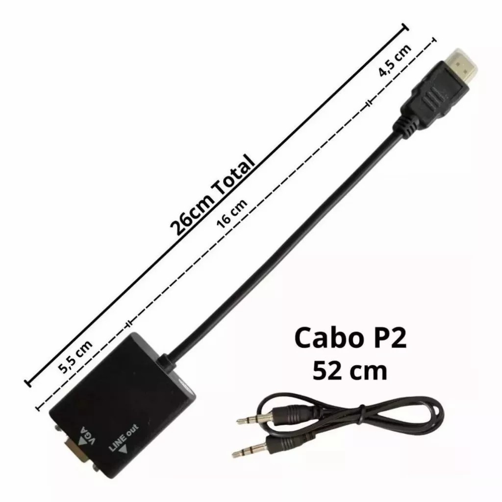 Cabo Conversor Adaptador Hdmi Para Vga Com Saída P2 Áudio