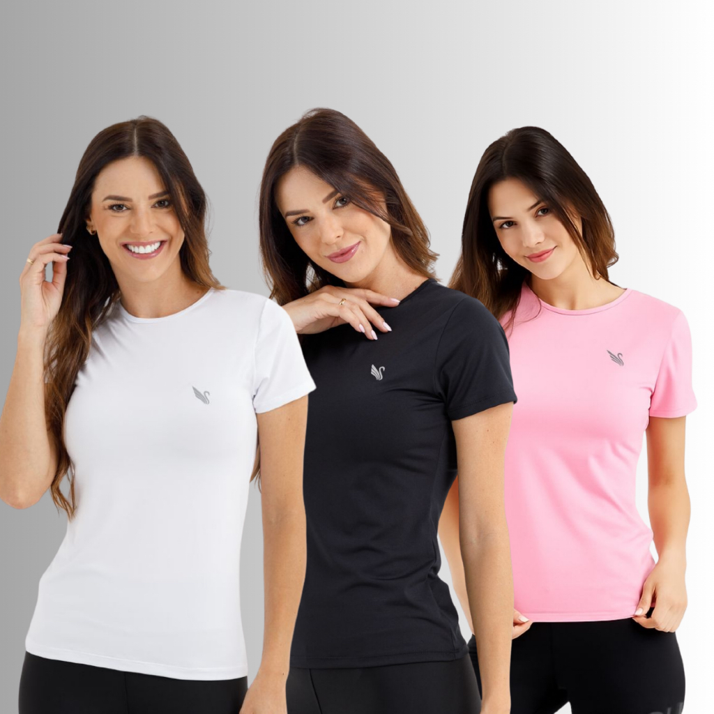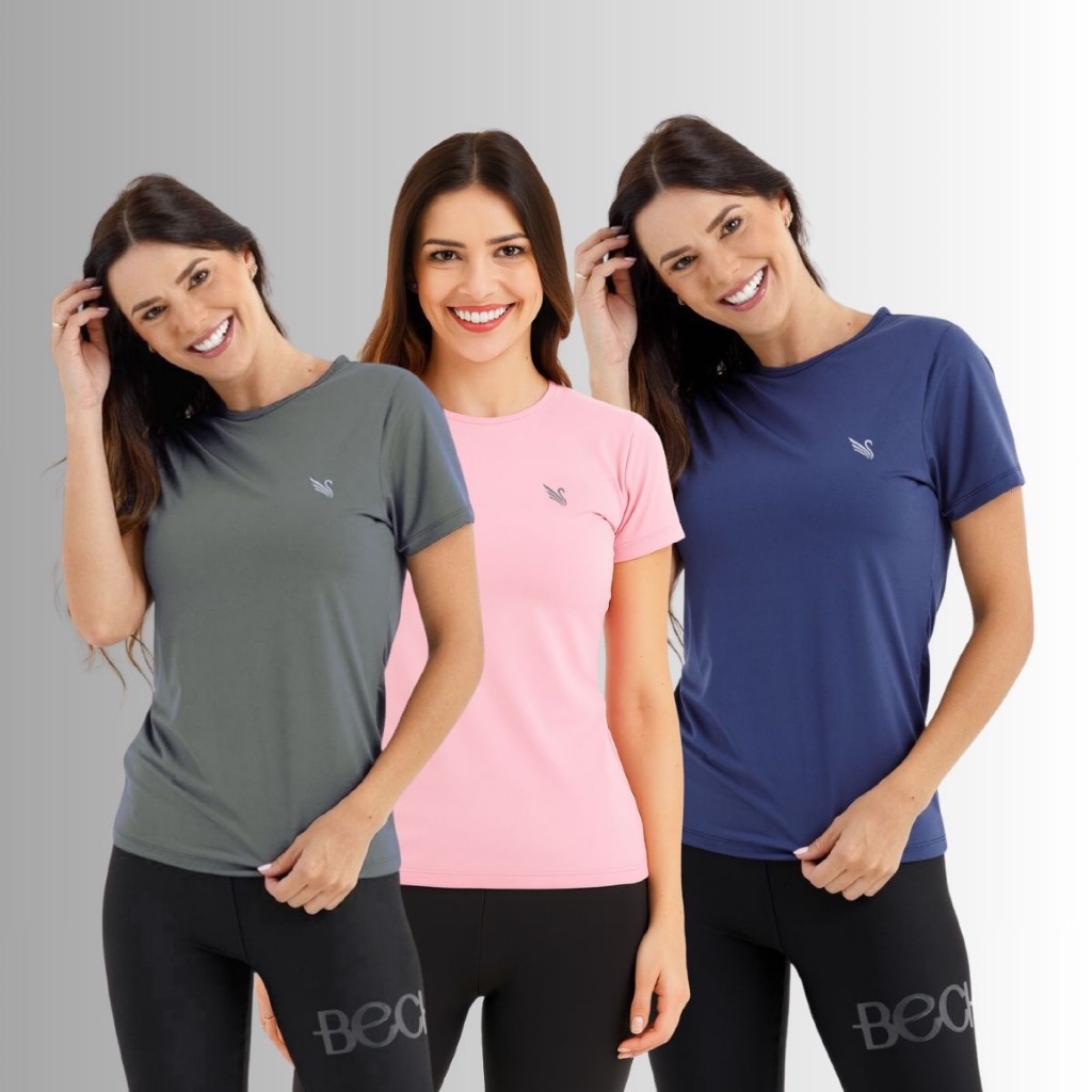 Kit 3 Camiseta Feminina Blusas Dry Fit Blusas Camisas Para Academia Uv 50 do Pao G2