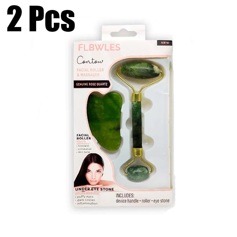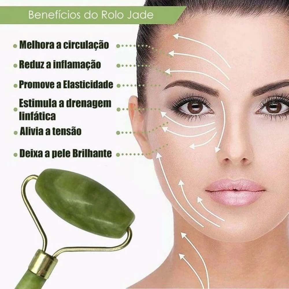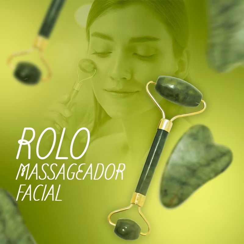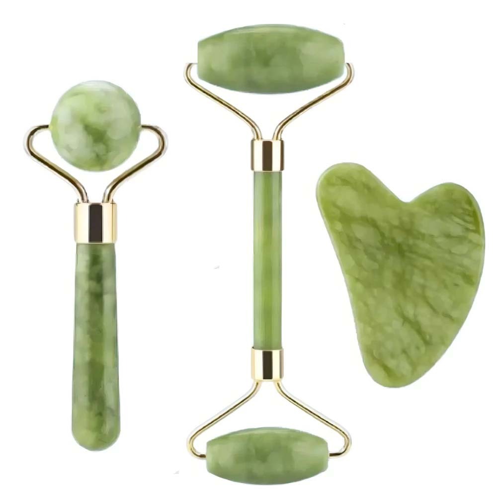 KIT 2/3 Peças Ferramenta de Massagem e Gua Sha de Pedra Natural - Rolo e Placa de Jade Verde e Cristal