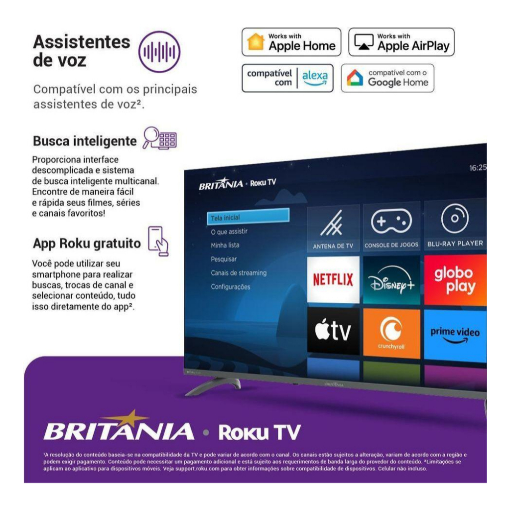 Smart TV 43" Britânia HDR10 Dolby Áudio Roku TV B43KRA