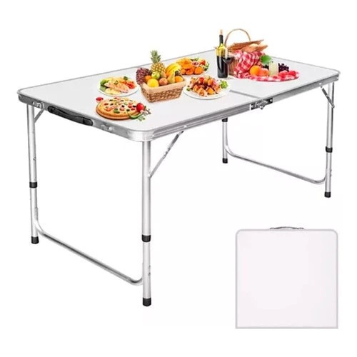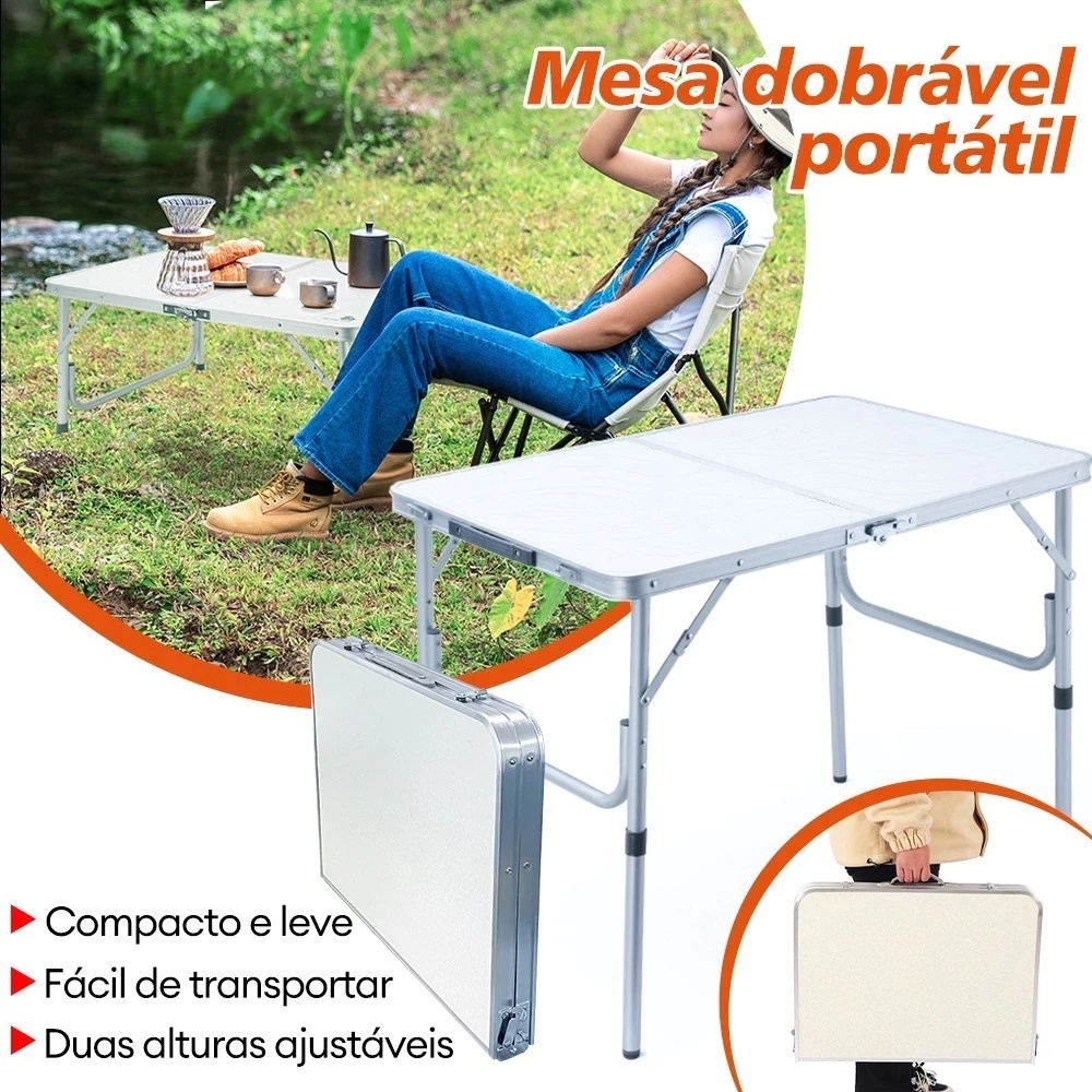 Mesa Picnic Branca 1,80M Dobrável Vira Maleta Portátil