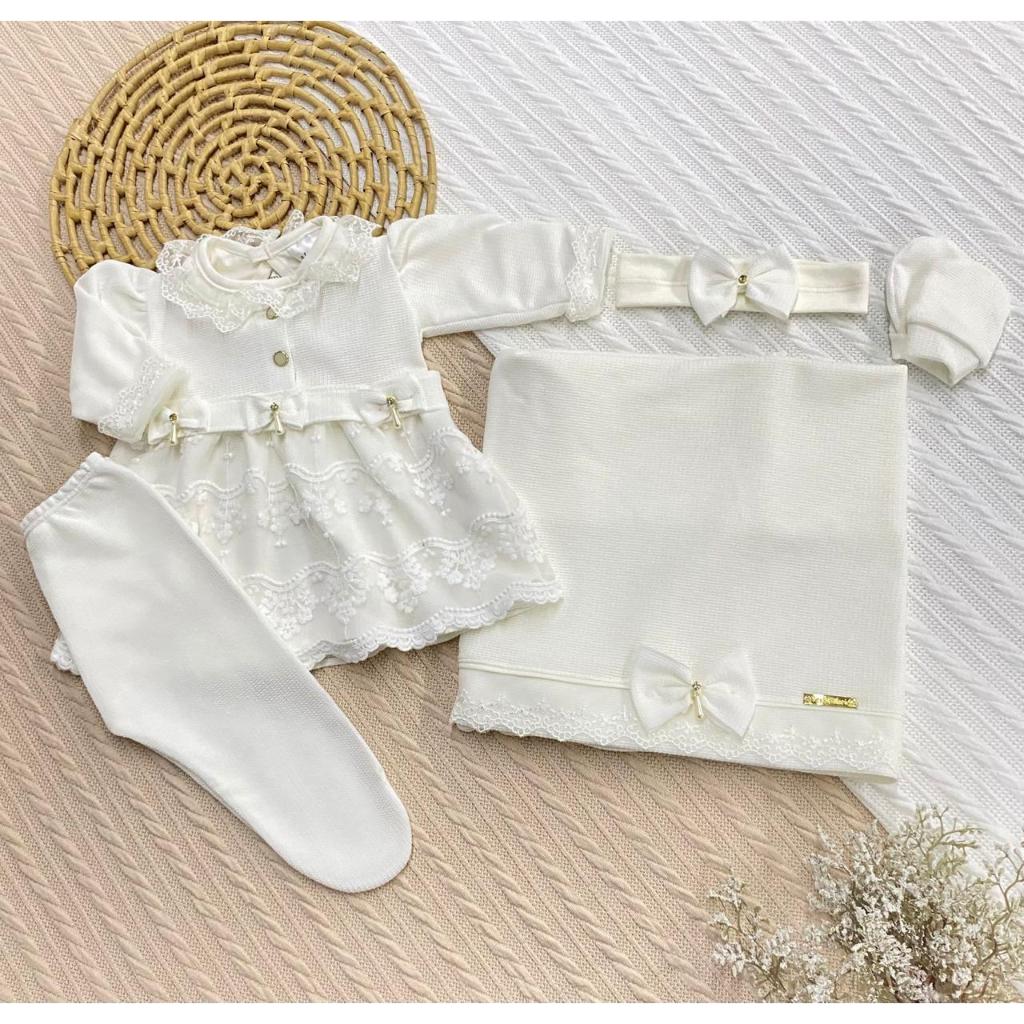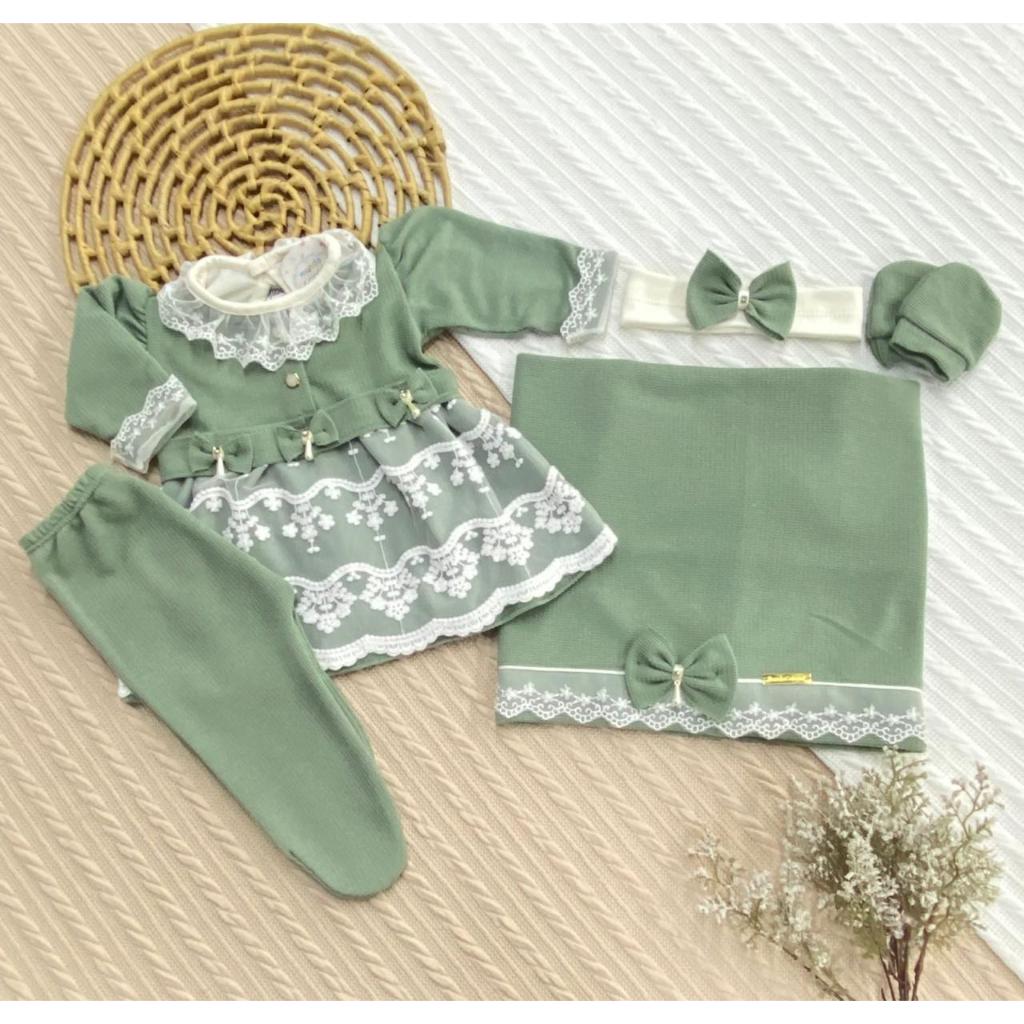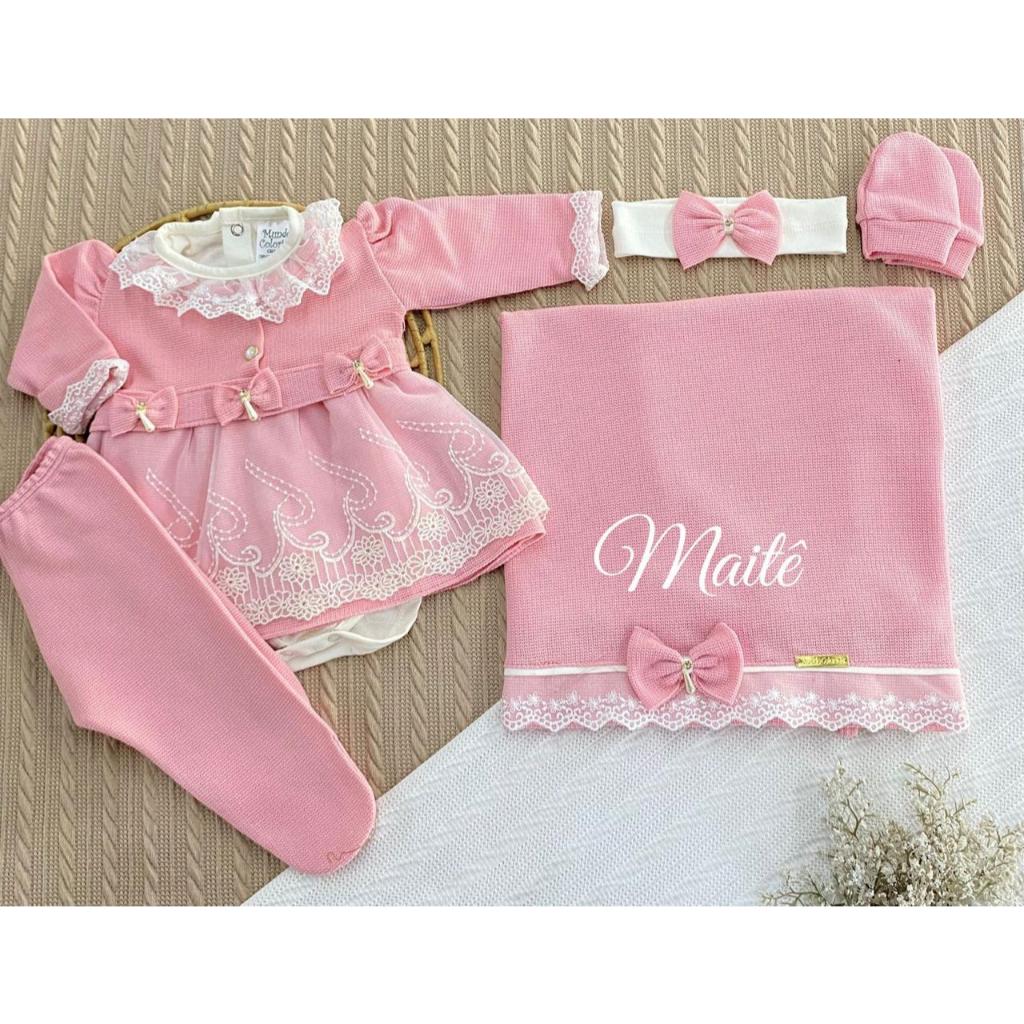 Kit Saída de Maternidade 6 Peças Luxo para Bebê Menina com Nome Personalizado Tam. RN (0-2 Meses)