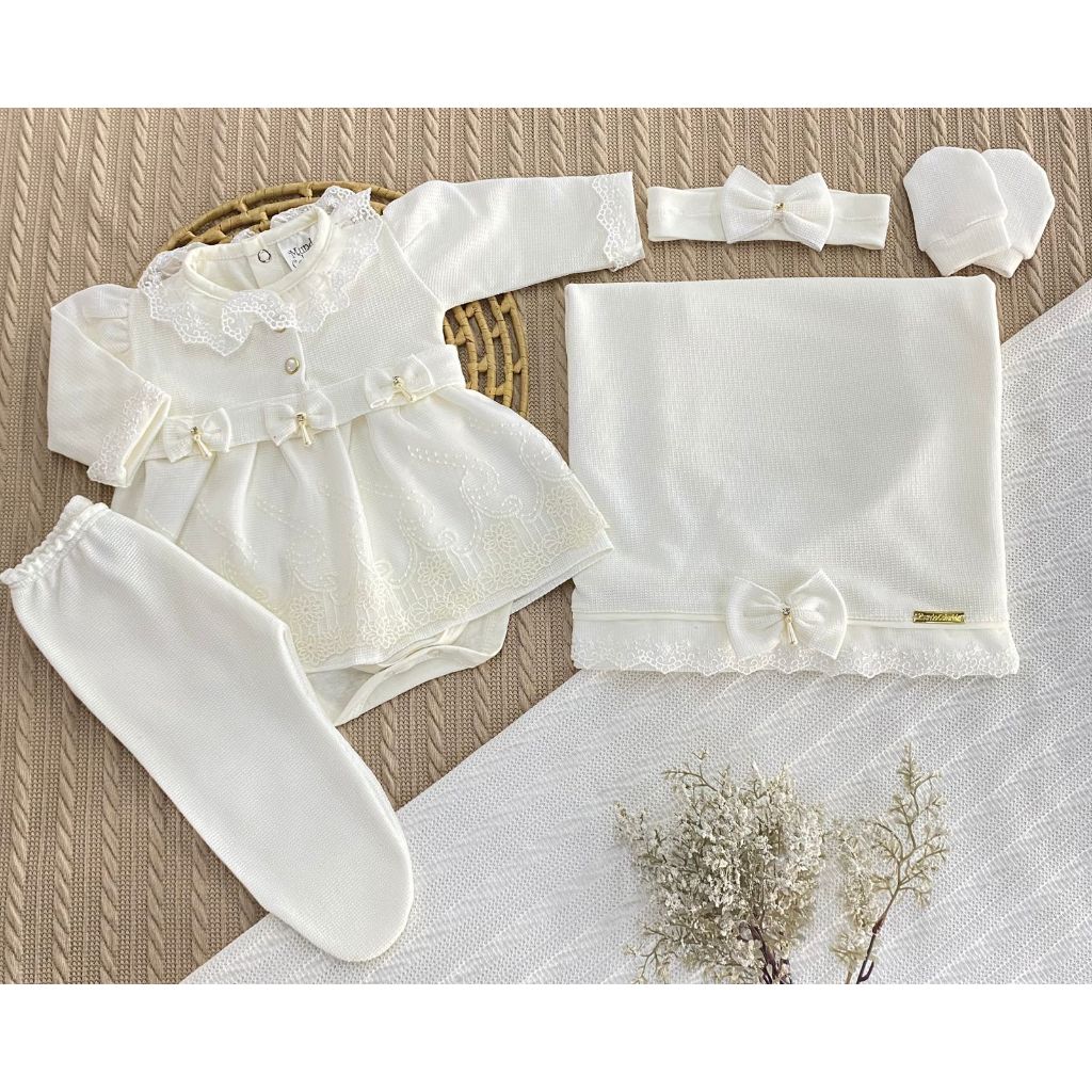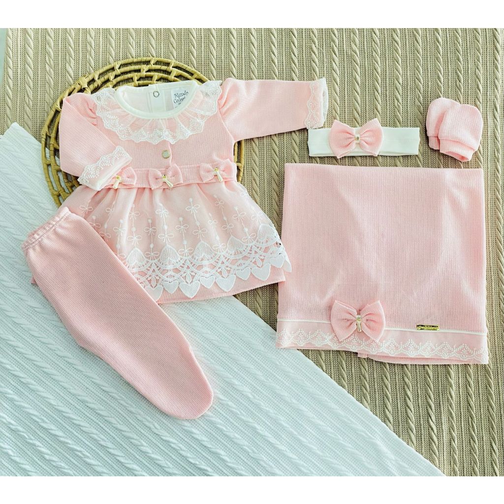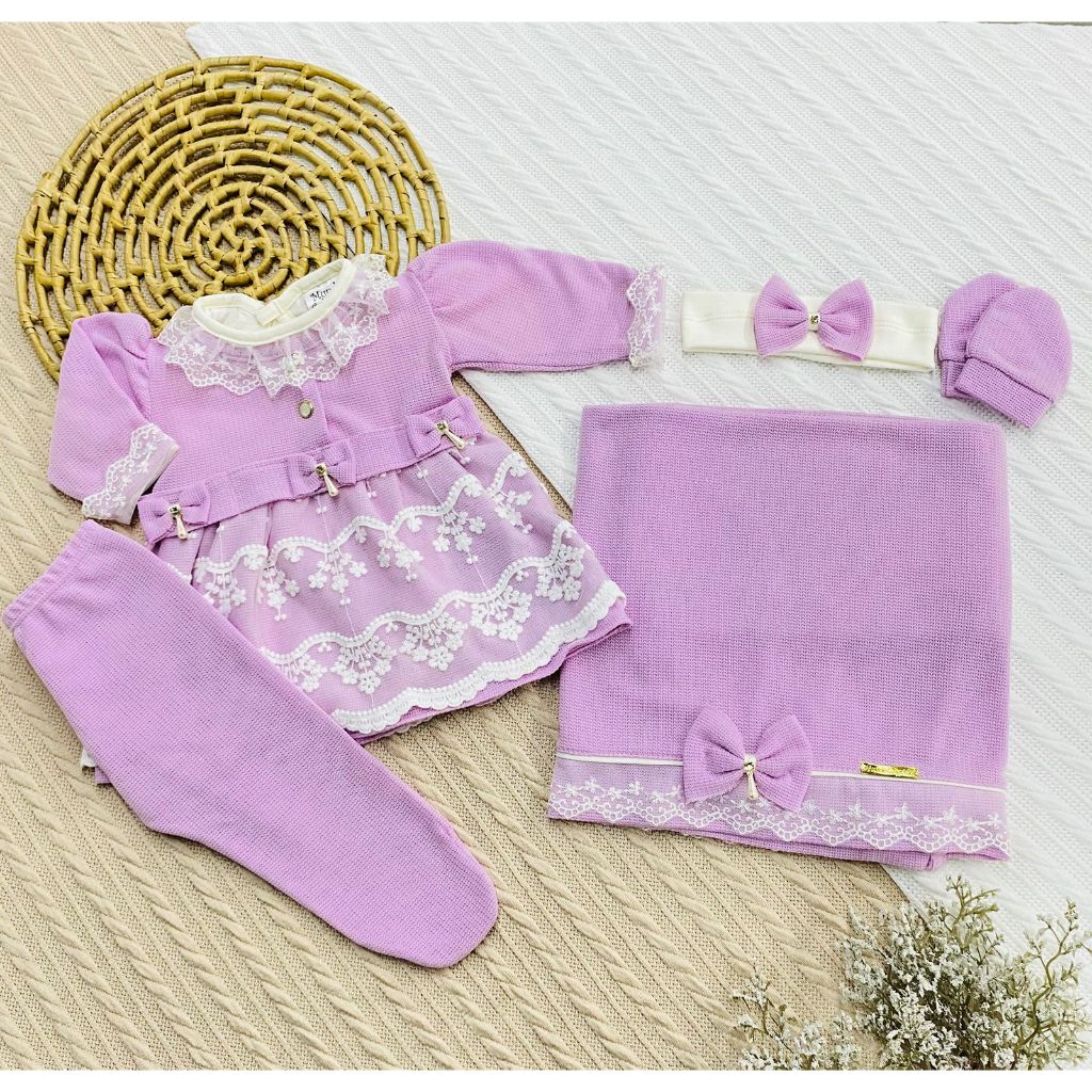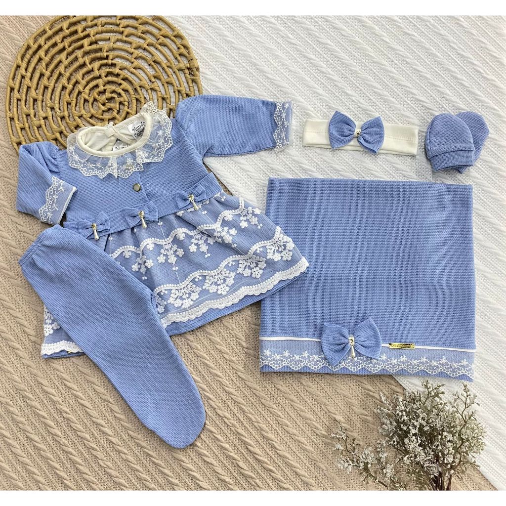 Kit Saída de Maternidade 6 Peças Luxo para Bebê Menina com Nome Personalizado Tam. RN (0-2 Meses)