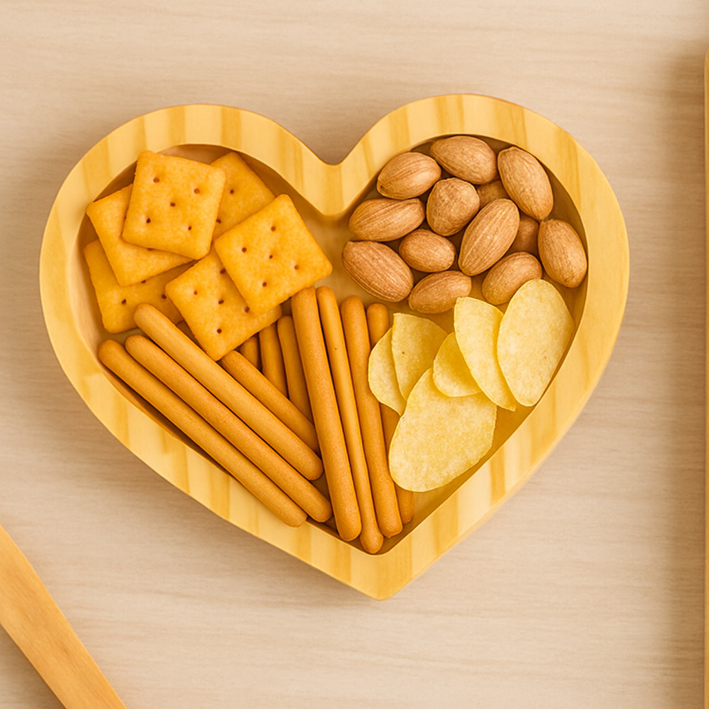 Petisqueira Aperitivos Formato Coração Para Servir Decorar Madeira Pinus