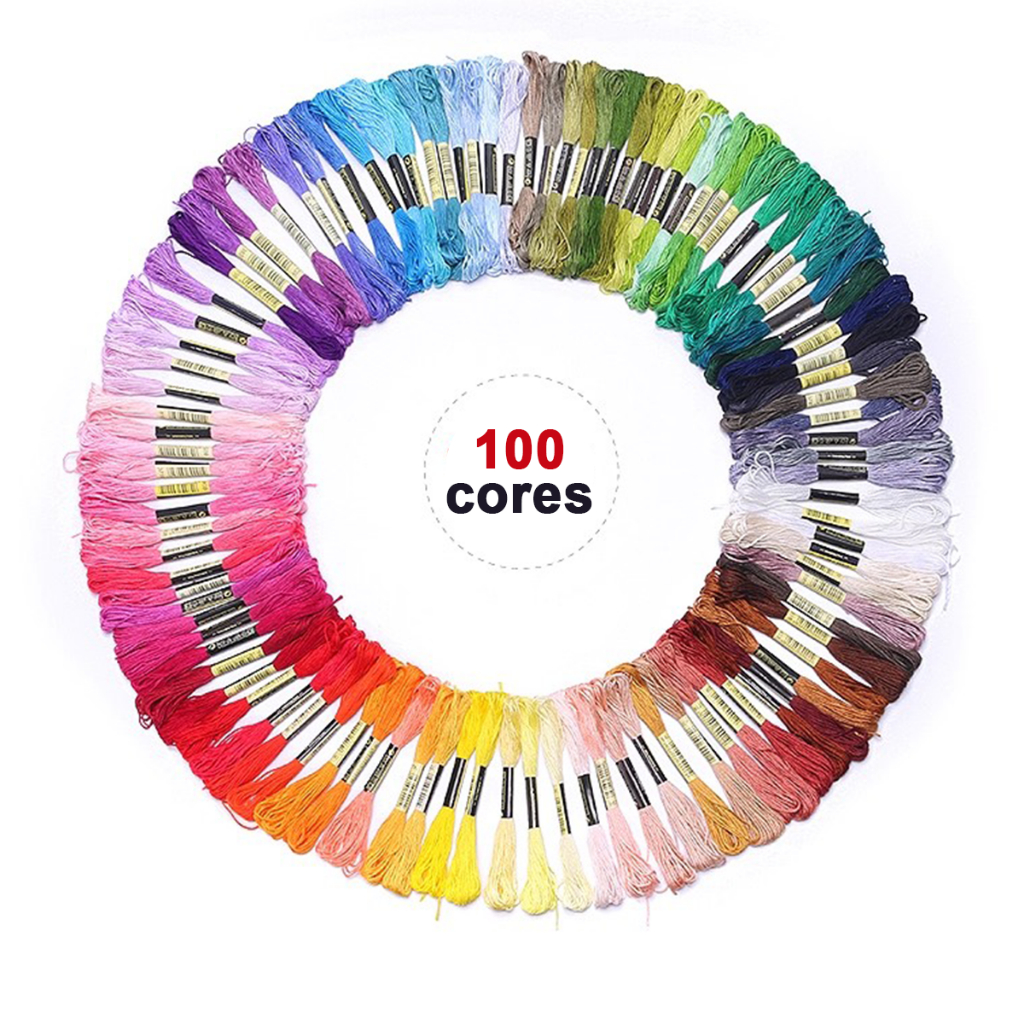 Kit 100 Linhas de Costura para Bordado e Ponto Cruz Fio Poliéster Algodão 100 Unidades
