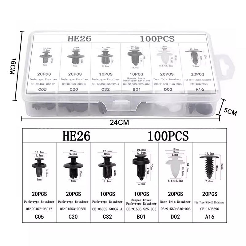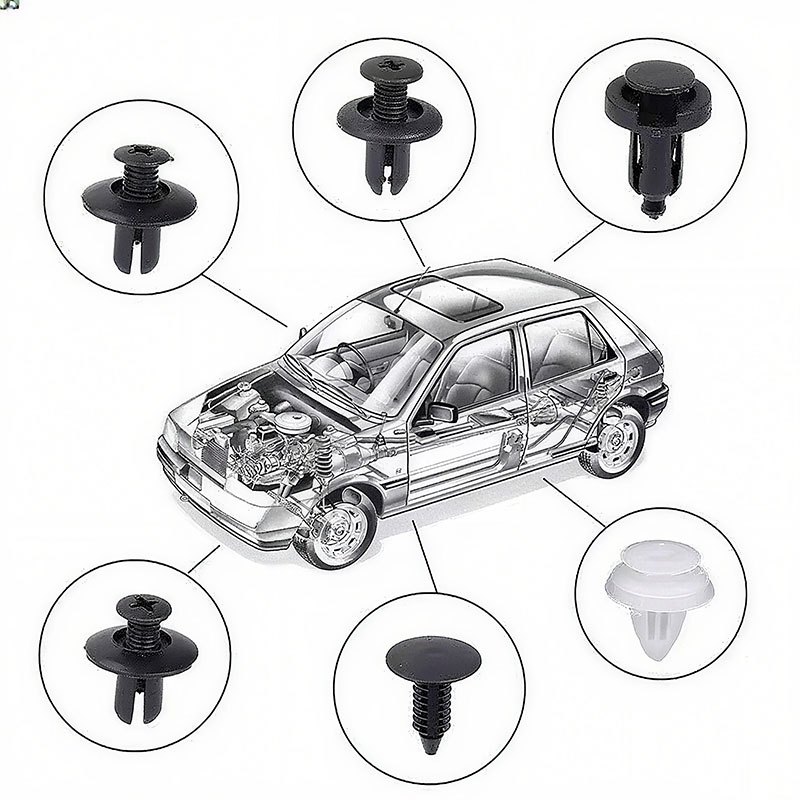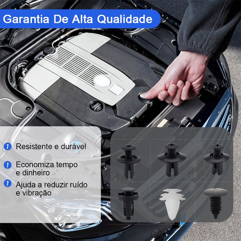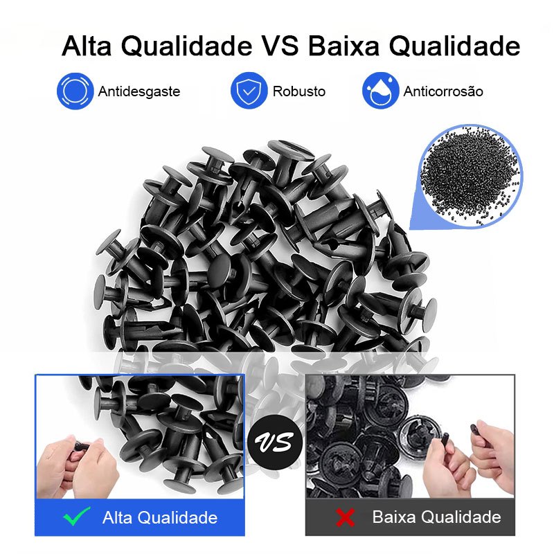 Kit 100 Fixadores Automáticos Clipe Misto de Plástico Automotivo - Push-In para Corpo de Carro