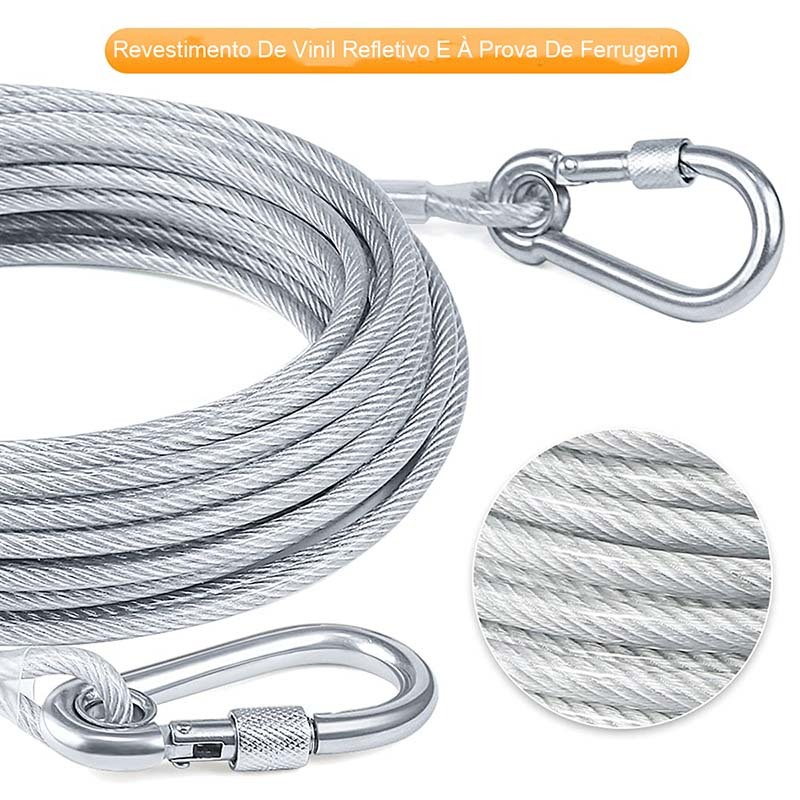Cabo de Amarração para Cães ou Passeio Varal de Aço 3/5/10 Metros Reforçado para Secar Roupas 3MM