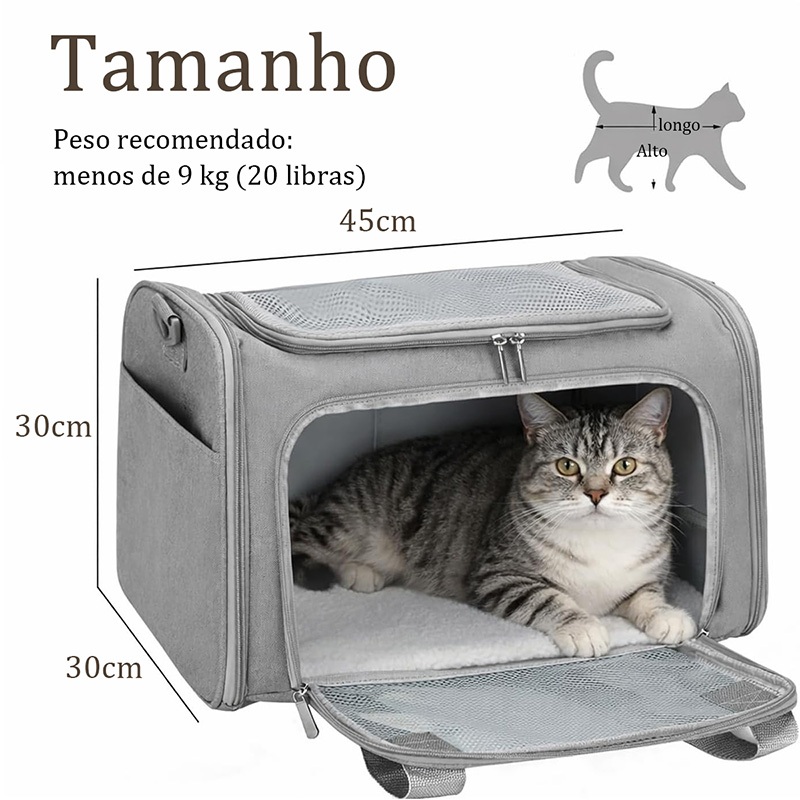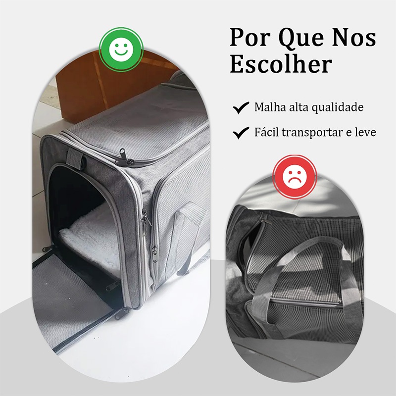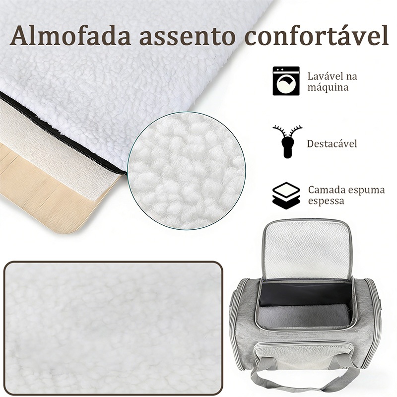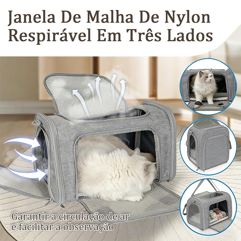 Bolsa Transporte Pet Expansível Cães Gatos Mochila Viagem Avião Cabine Resistente Leve