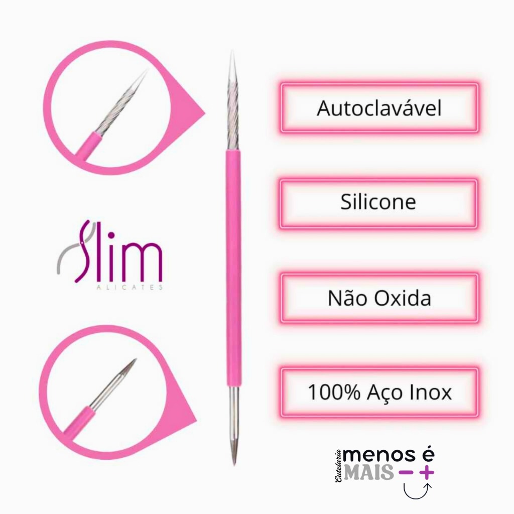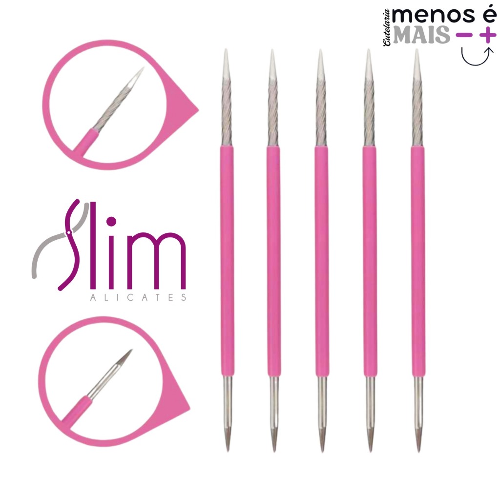 Kit 5 Palitos 105 Slim Inox Rosa – Ferramentas para Cutícula e Unhas