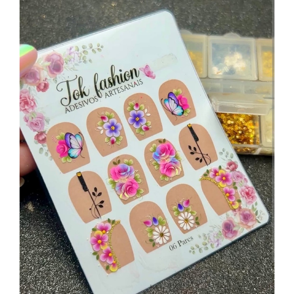 180 Adesivos Artesanais para Unhas, peliculas para unhas, adesivo artesanais, unh, joias, pedrarias