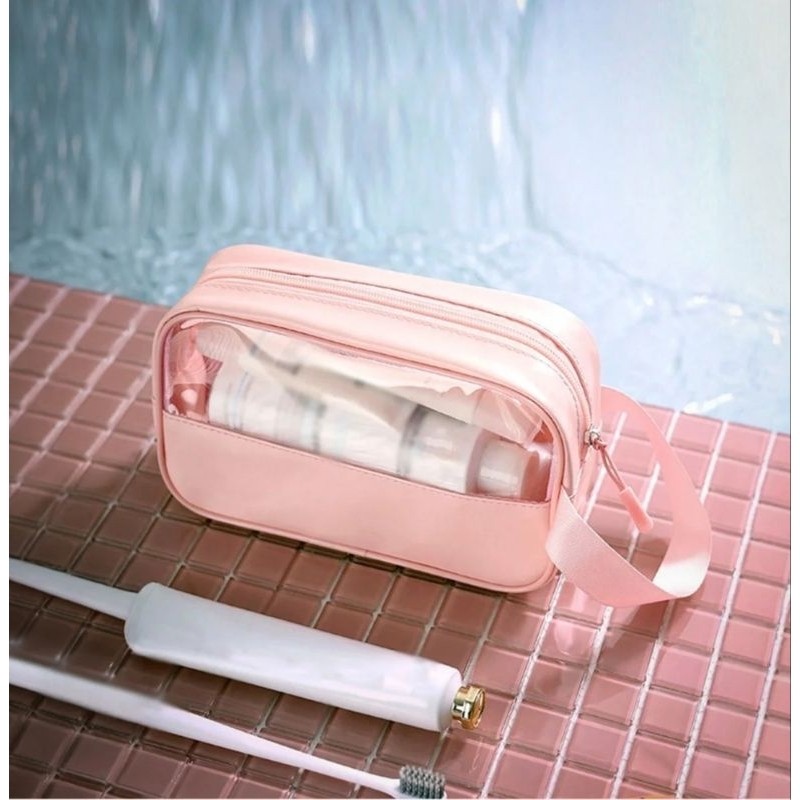Bolsa Necessaire Portátil Pequena Transparente de Viagem para Cosméticos/Maquiagem e Higiene Compacta Leve Impermeável