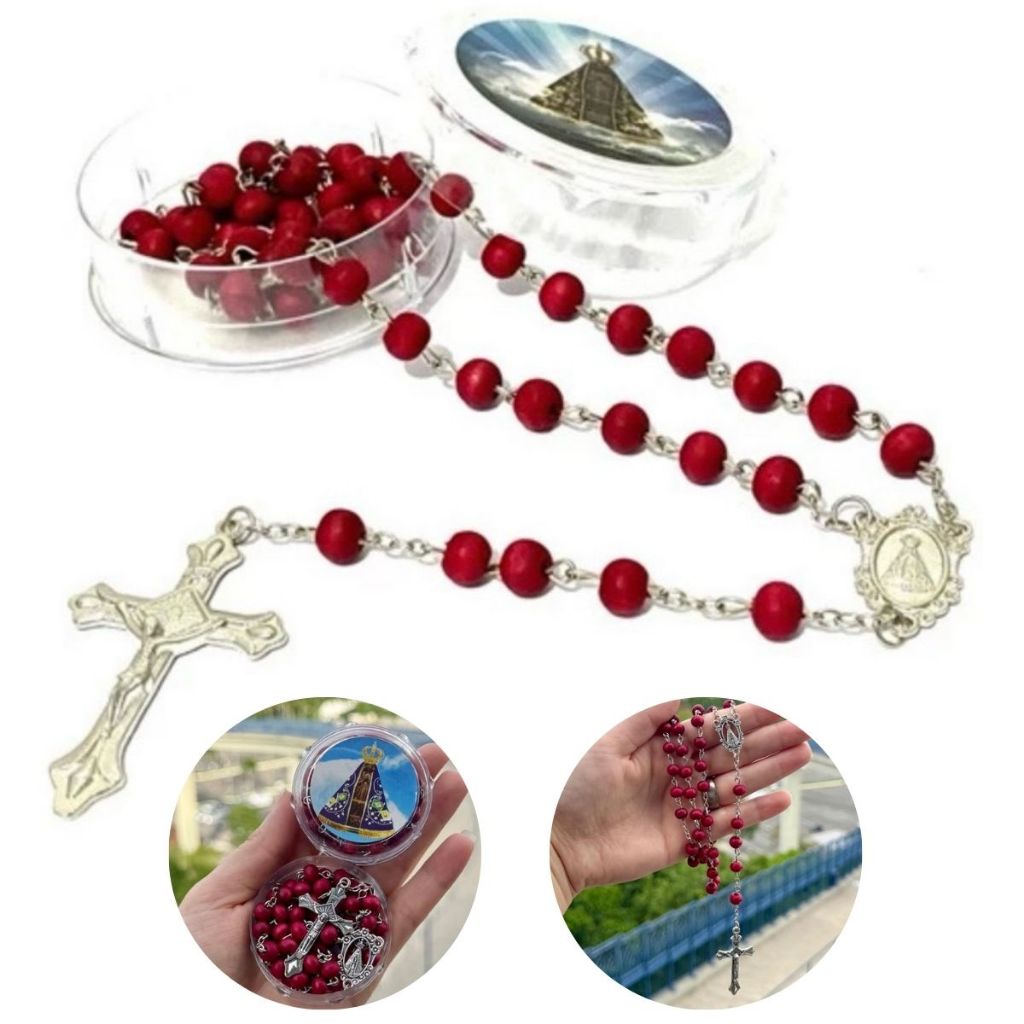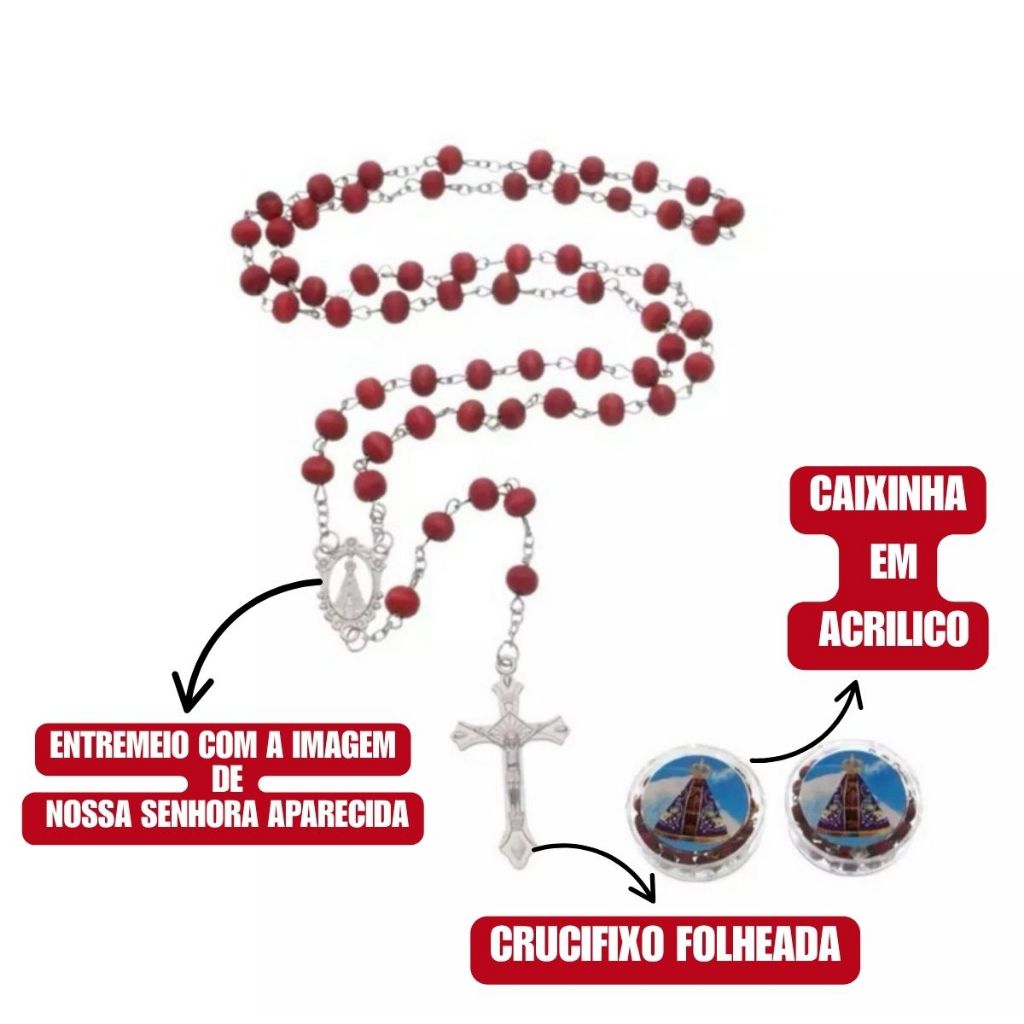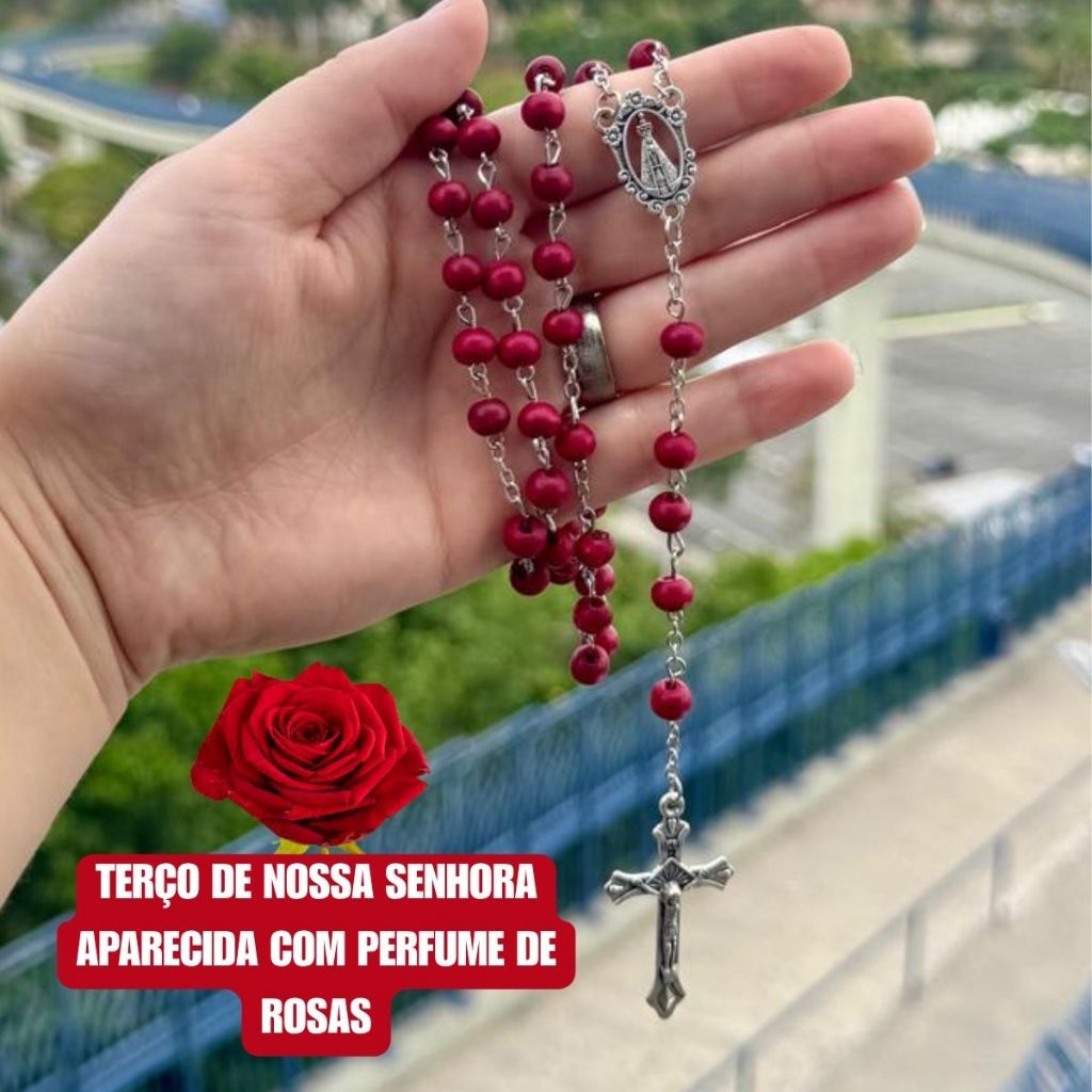 Kit 1 a 12 Terços Católicos Perfumados de Rosas com Medalha de Aparecida