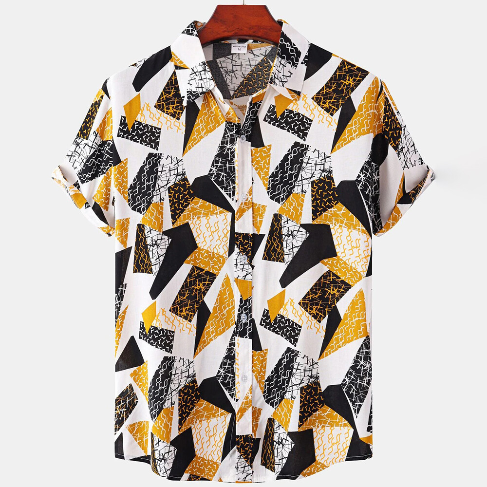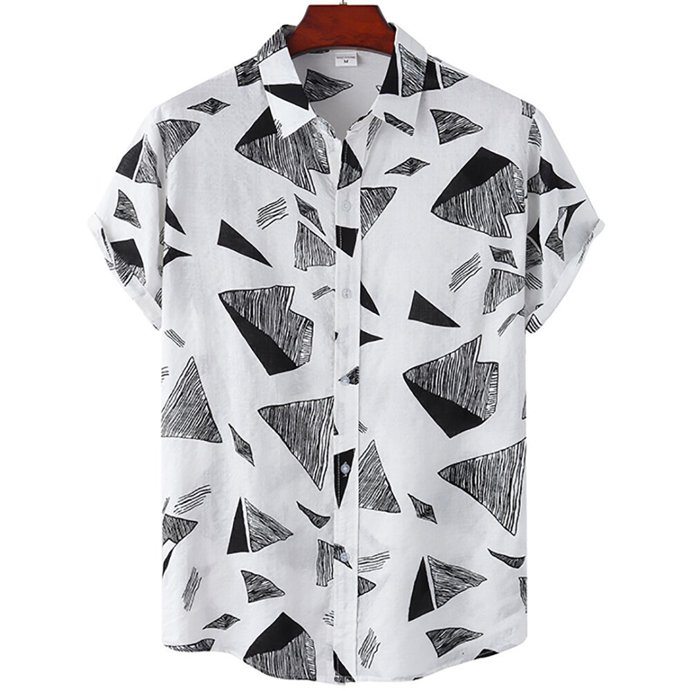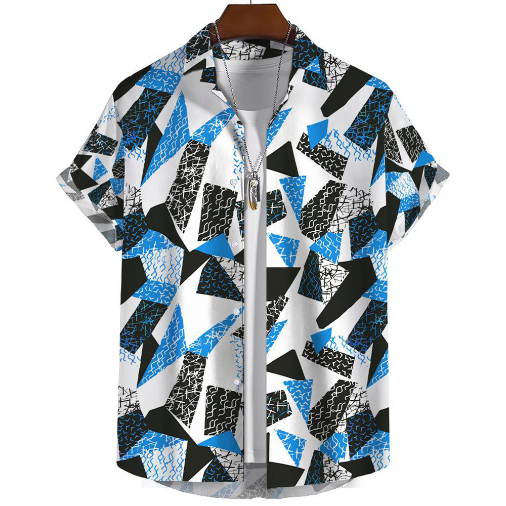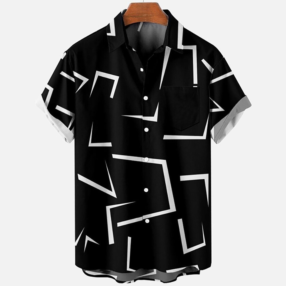 Camisa Masculina Plus Size Verão Manga Curta Xadrez Geométrica Padrão Havaiano Praia Camisas Masculinas Blusa Casual Top