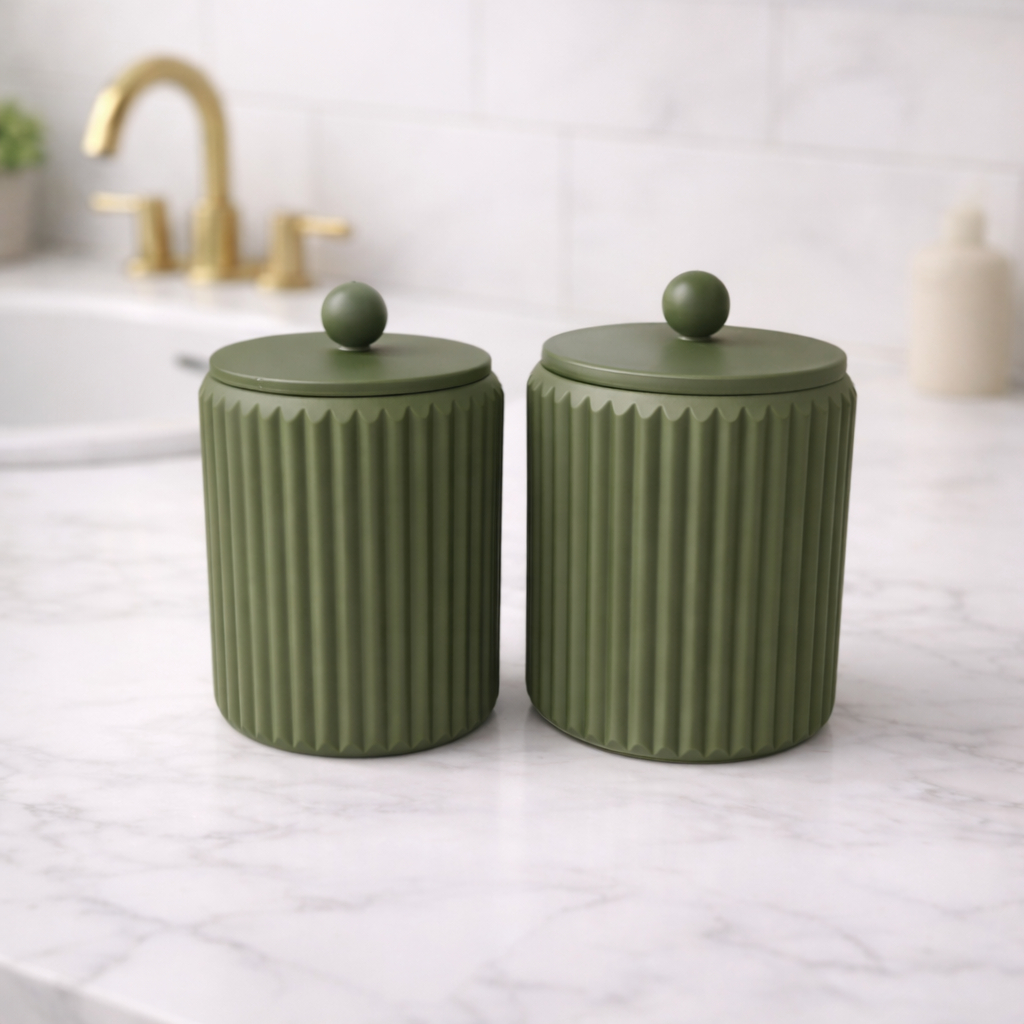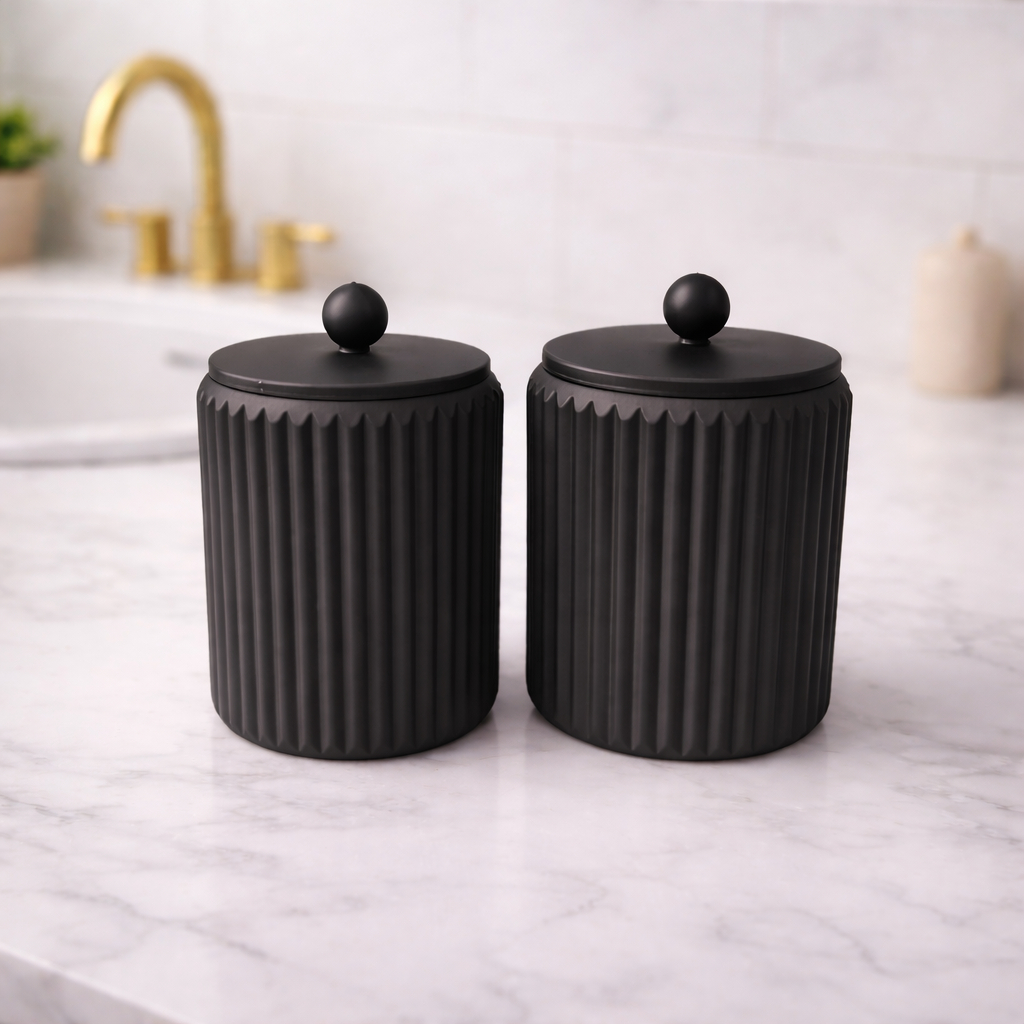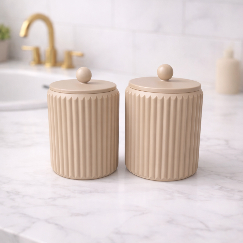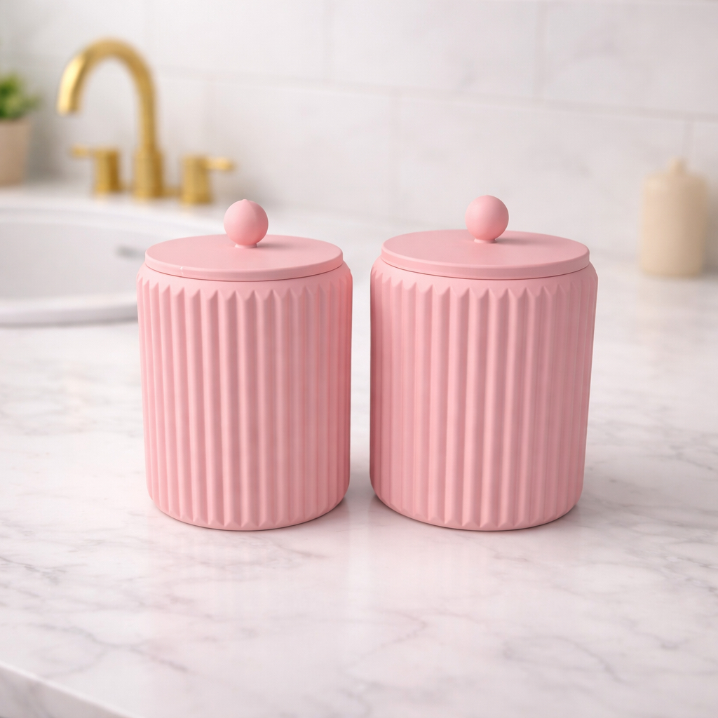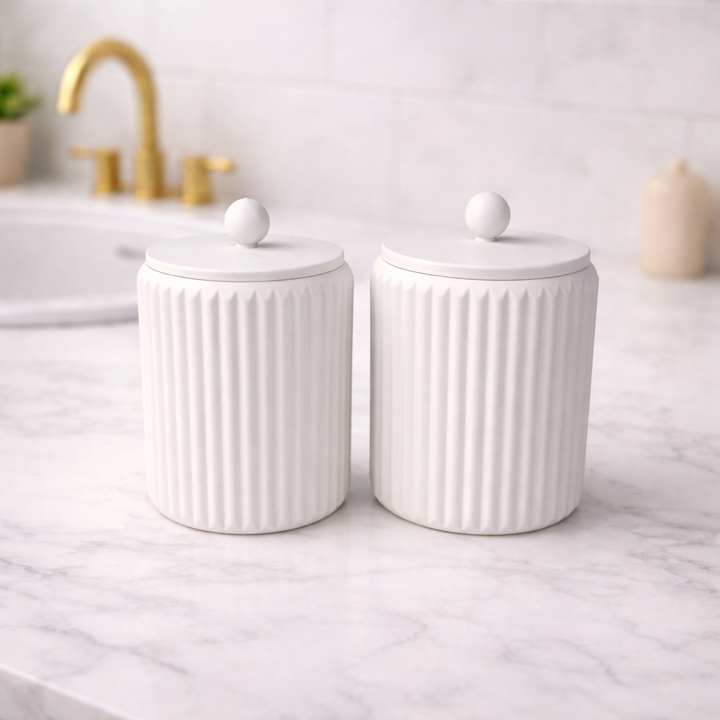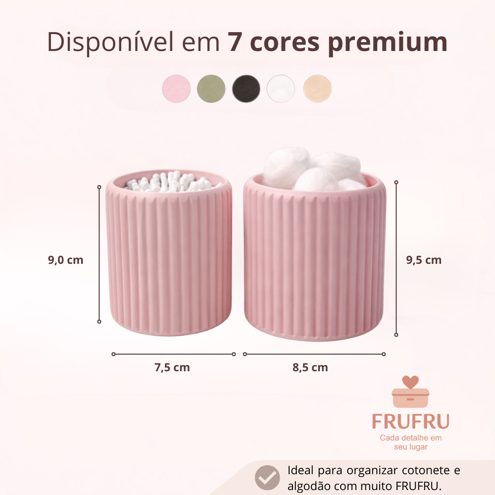 Porta Cotonete e Porta Algodão Canelado com Tampa FRUFRU – Organizador Banheiro Penteadeira Feminino Infantil Bebês