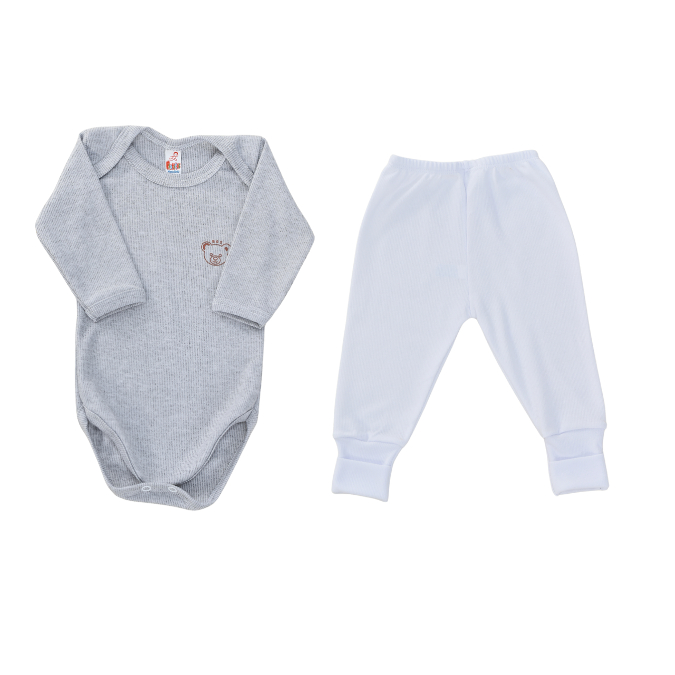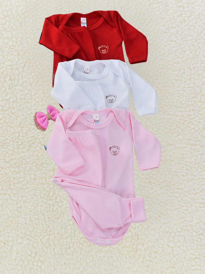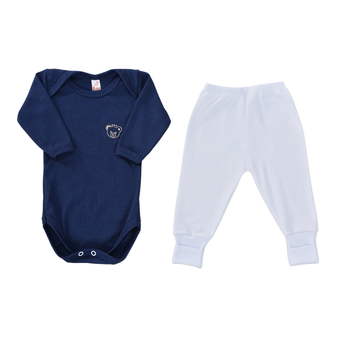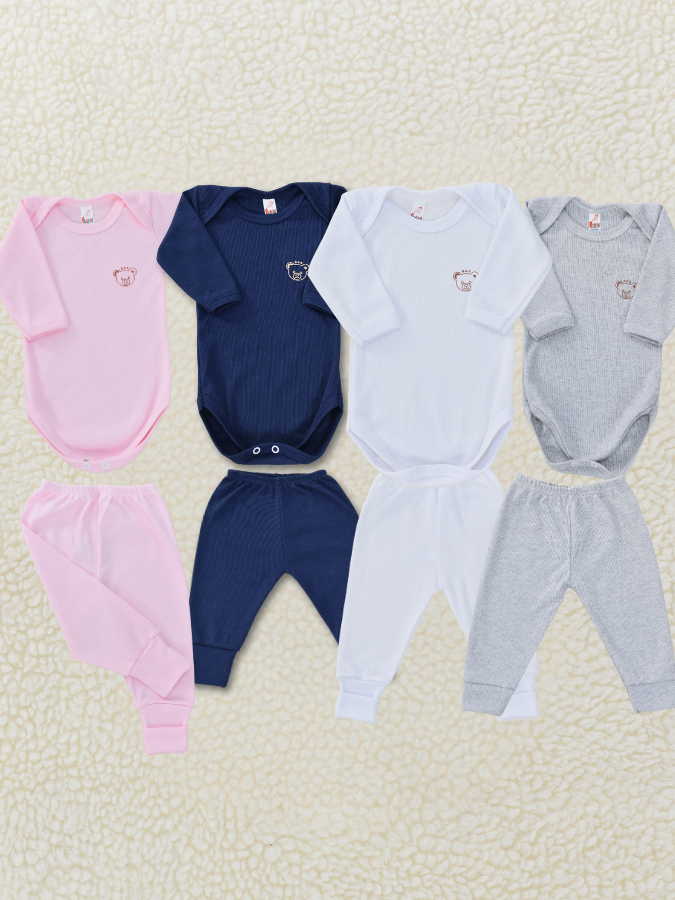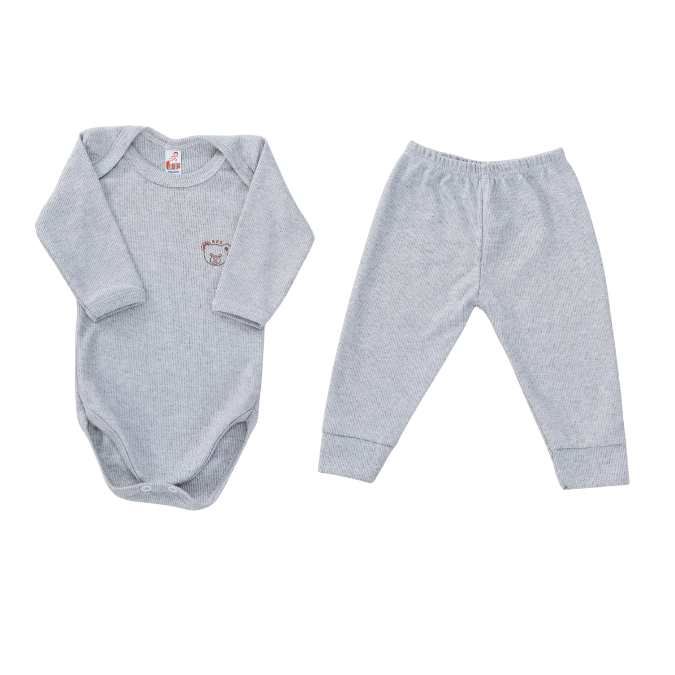Conjunto Body e Calça Kit 2 Peças Bebê Manga Longa Ribana Algodão Unissex Frio Inverno