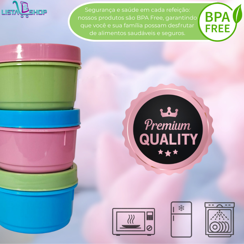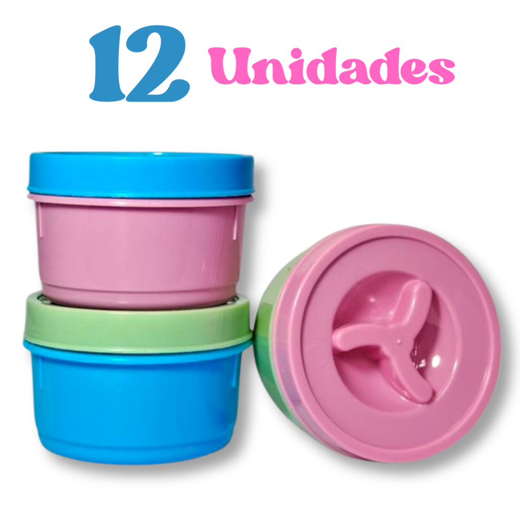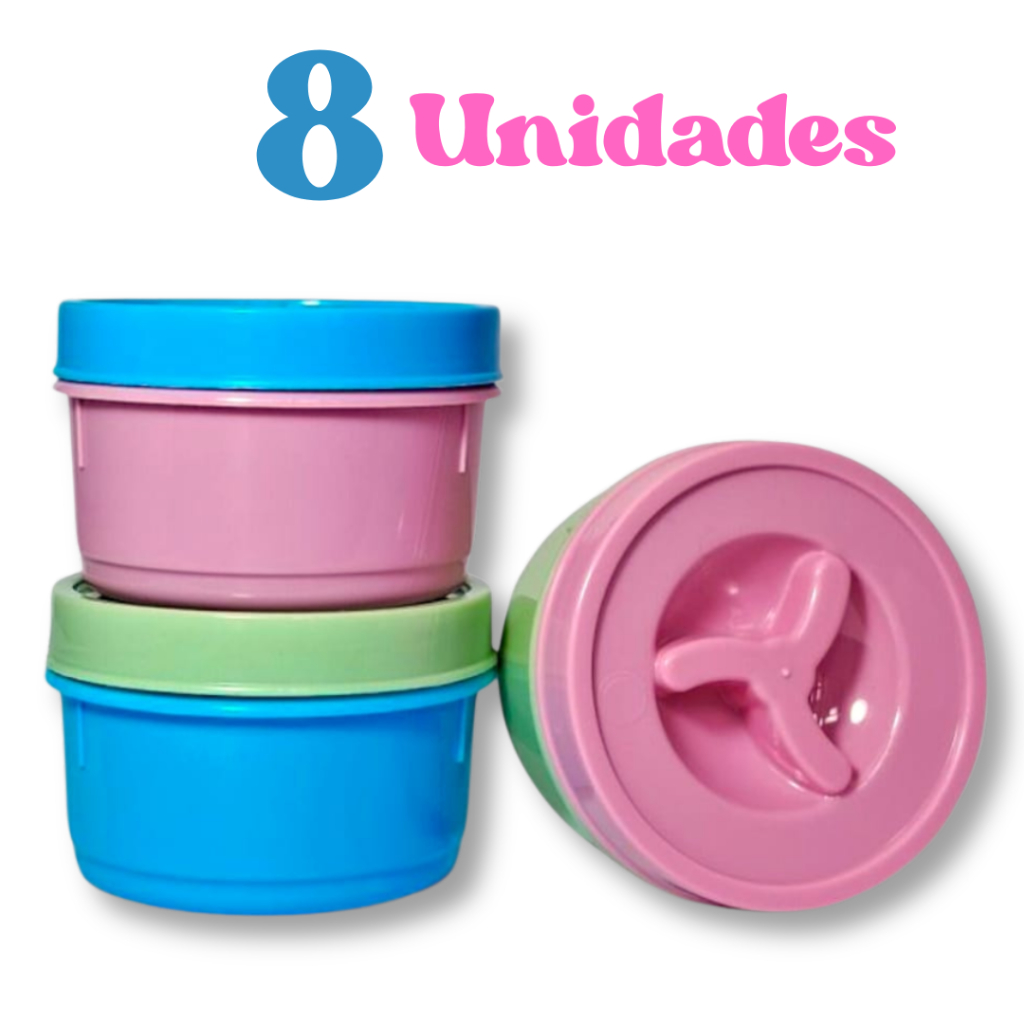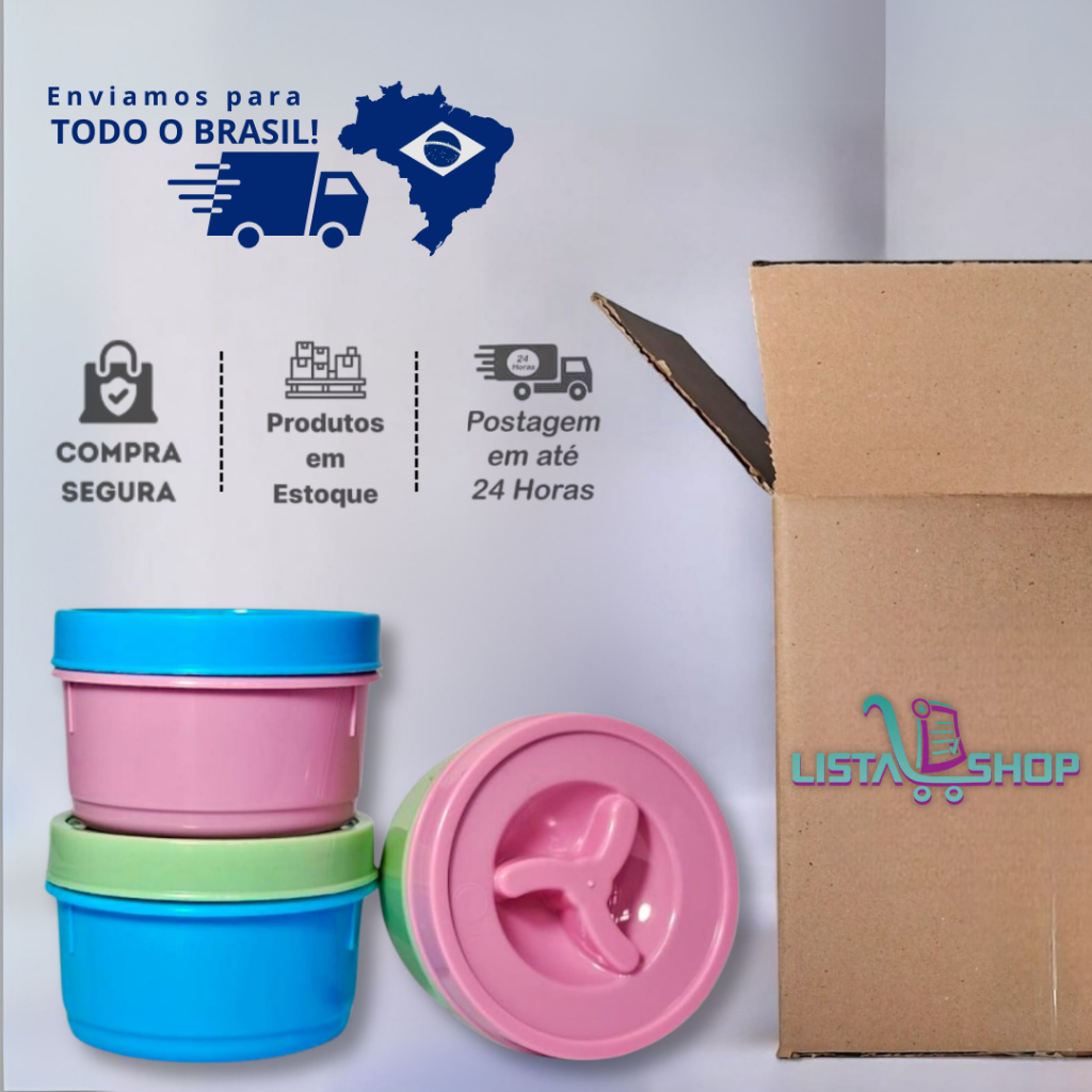 Kit Potes Redondo Baixo Pequeno 300ml Colorido Tampa De Rosca Pote Plástico Colors Hermético Unidade