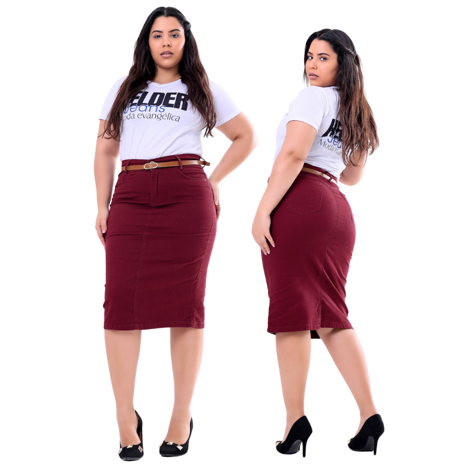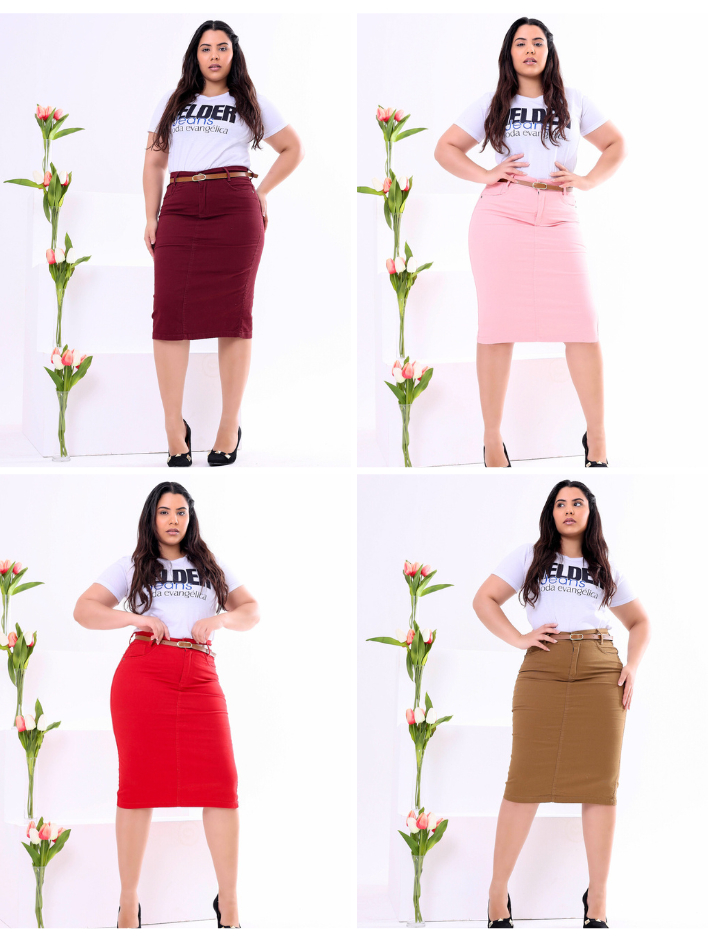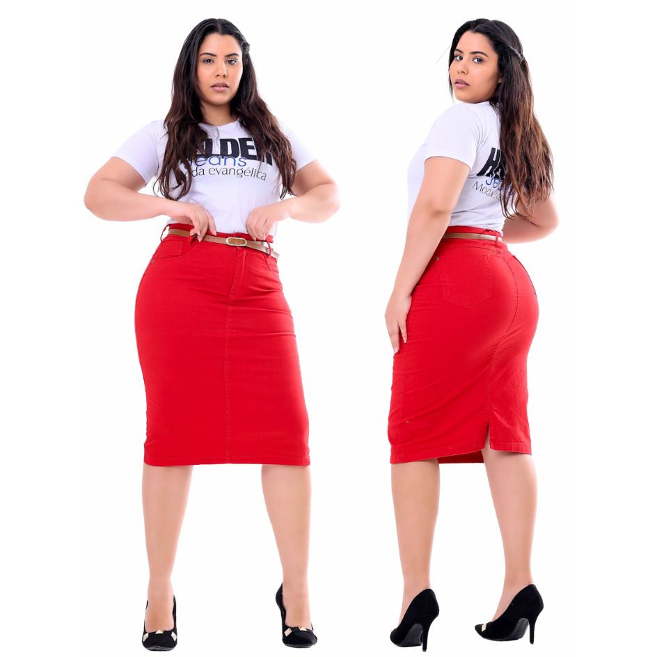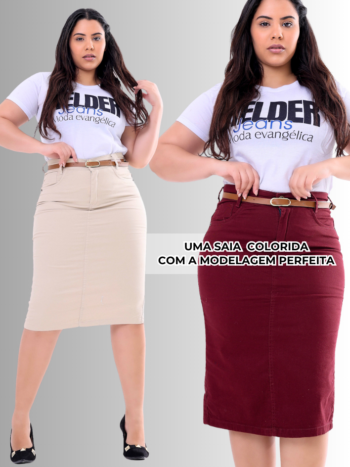 Saia Jeans Midi Evangelica Colorida Cintura Alta com Lycra Diversas Cores