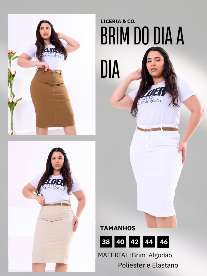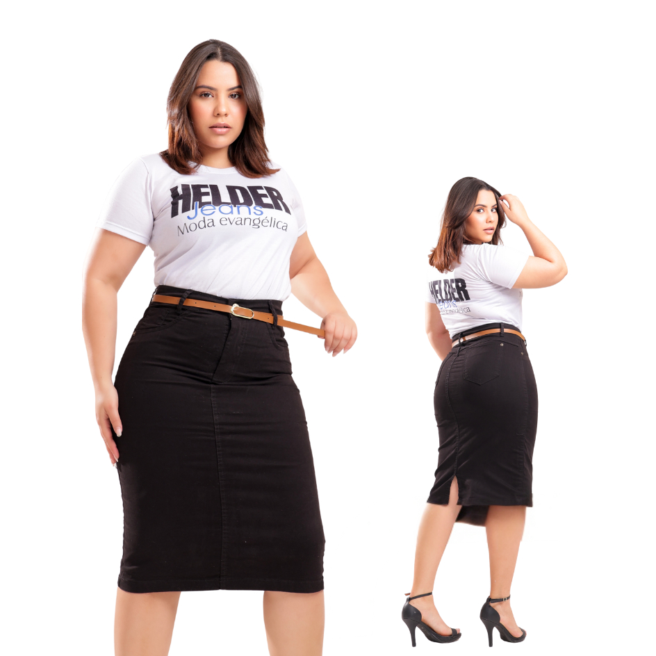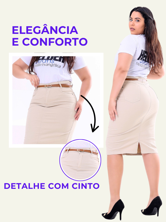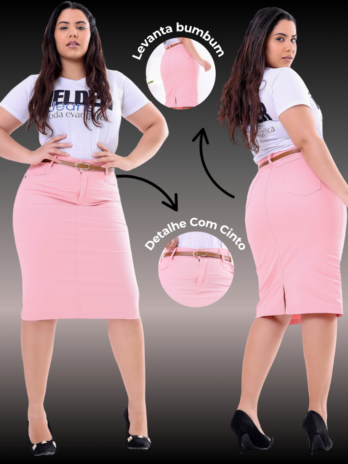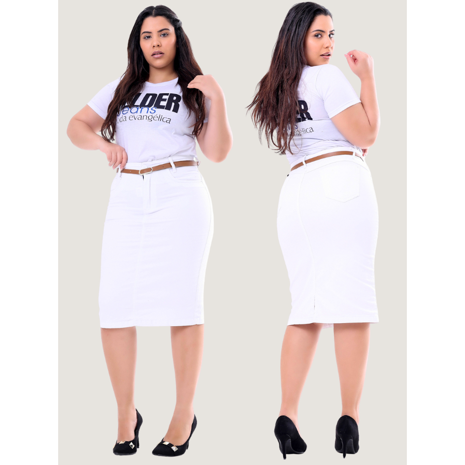 Saia Jeans Midi Evangelica Colorida Cintura Alta com Lycra Diversas Cores