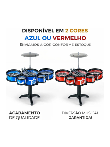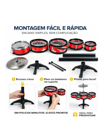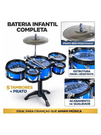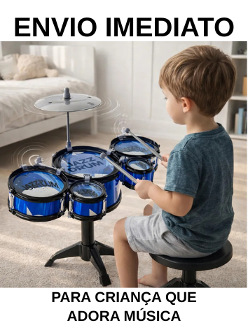 BATERIA INFANTIL COMPLETA 5 TAMBORES + PRATO Transforme seu pequeno em um verdadeiro baterista