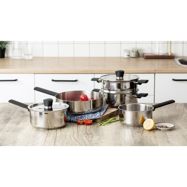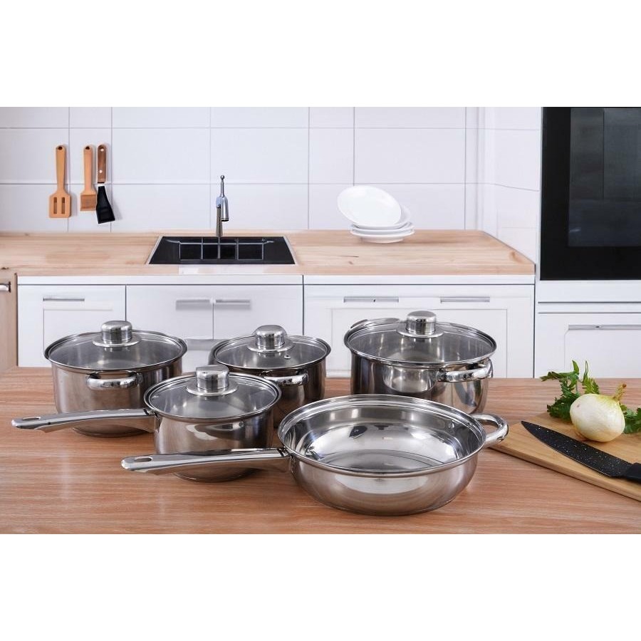 Kit Conjunto Panelas Inox 5 Peças Com Tampa de Vidro Aço Inox Durável e Design Moderno Wincy - Dia Das Mães