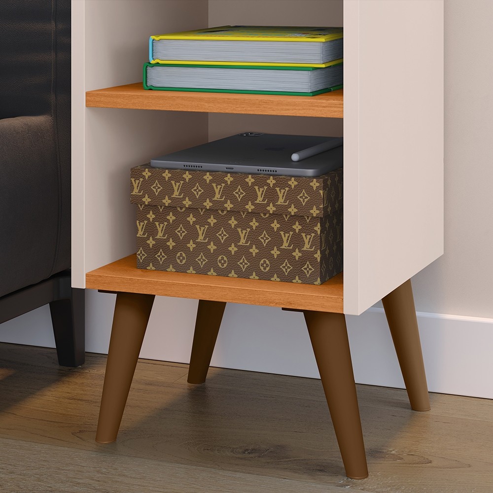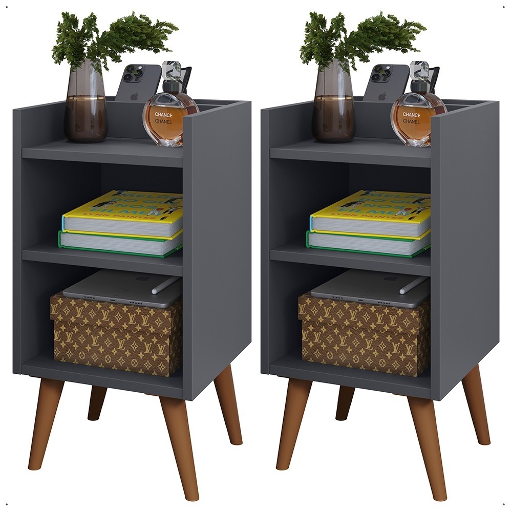 KIT 2 Mesa de Cabeceira Max com Porta Celular Retrô Criado Quarto com Prateleira Nicho Varias Cores