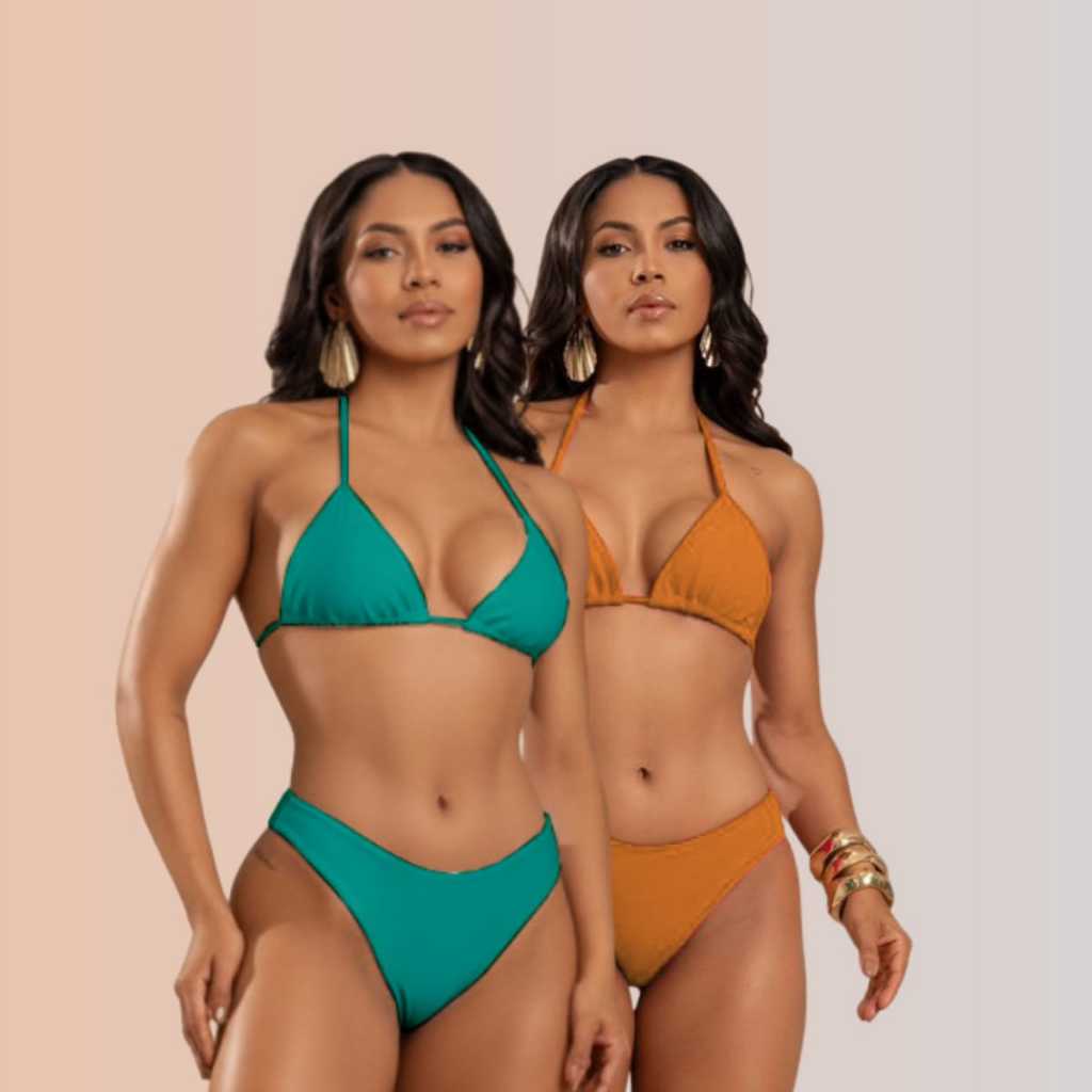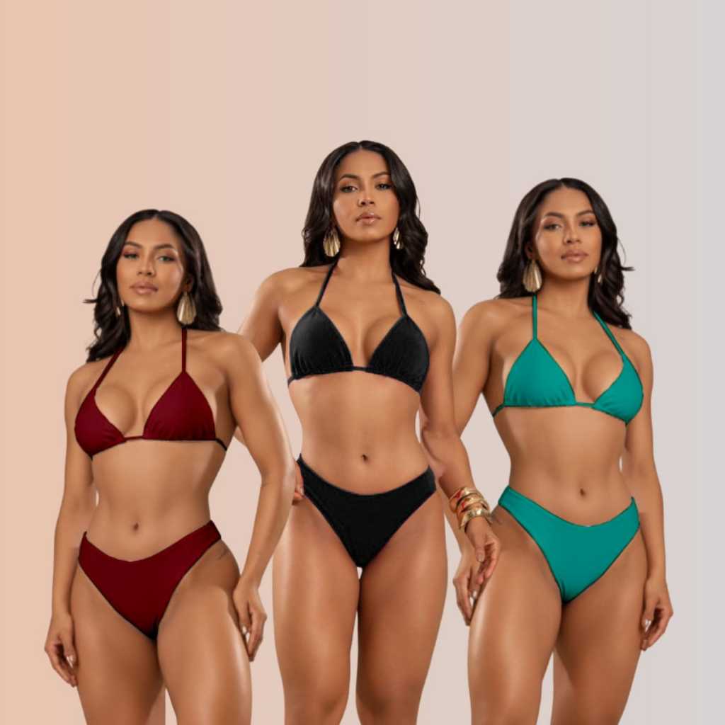 Kit Biquínis Cortininha Asa Dental Sem Bojo Moda Praia