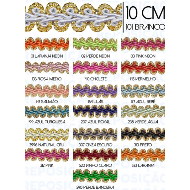 Passamanaria - Ref:Galao-91-10mm Ouro e Cor Rolo C/10 Metros