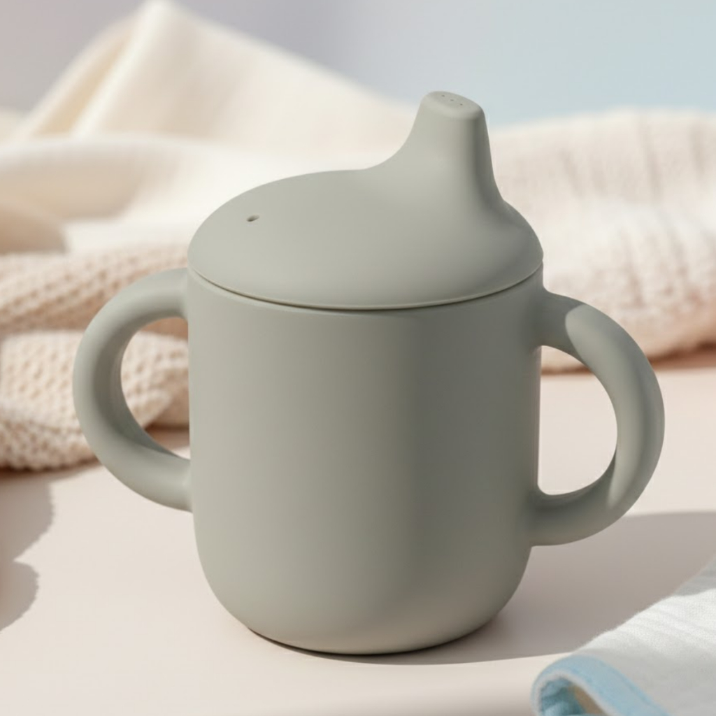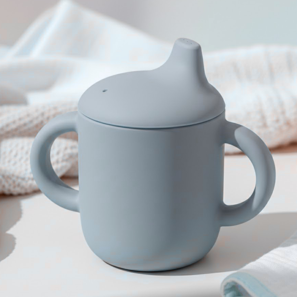 Copo de Treinamento Em Silicone Transição Introdução Alimentar 120ml Bebê Plinu Verde Azul