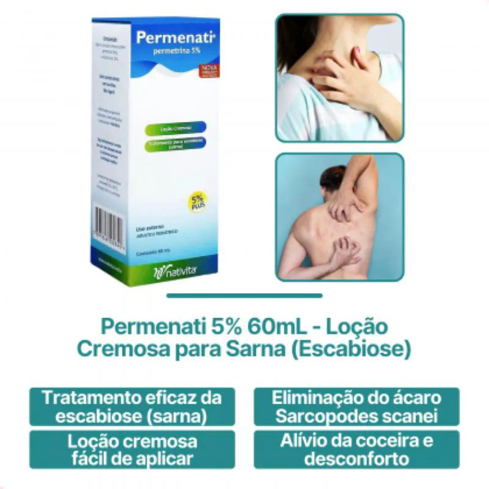 kit com 3 Permenati 5% Permetrina Loção para Sarna Escabiose Coceira 60 ml