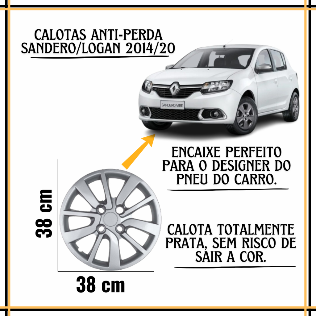 Jogo 4 Calota Renault Logan Sandero Aro 15 2014 2016 2018 2020 Antiperda Prata Emblemas