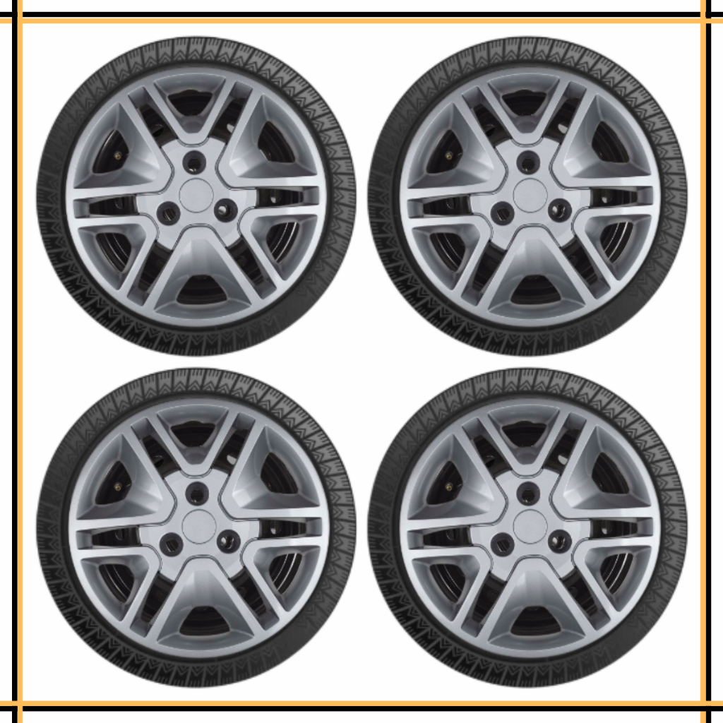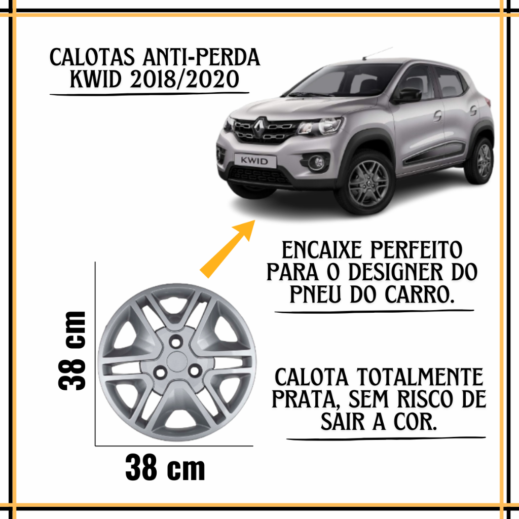 Jogo 4 Calota Kwid Renault Outsider 2018 2019 2020 2021 Antiperda Prata Emblema