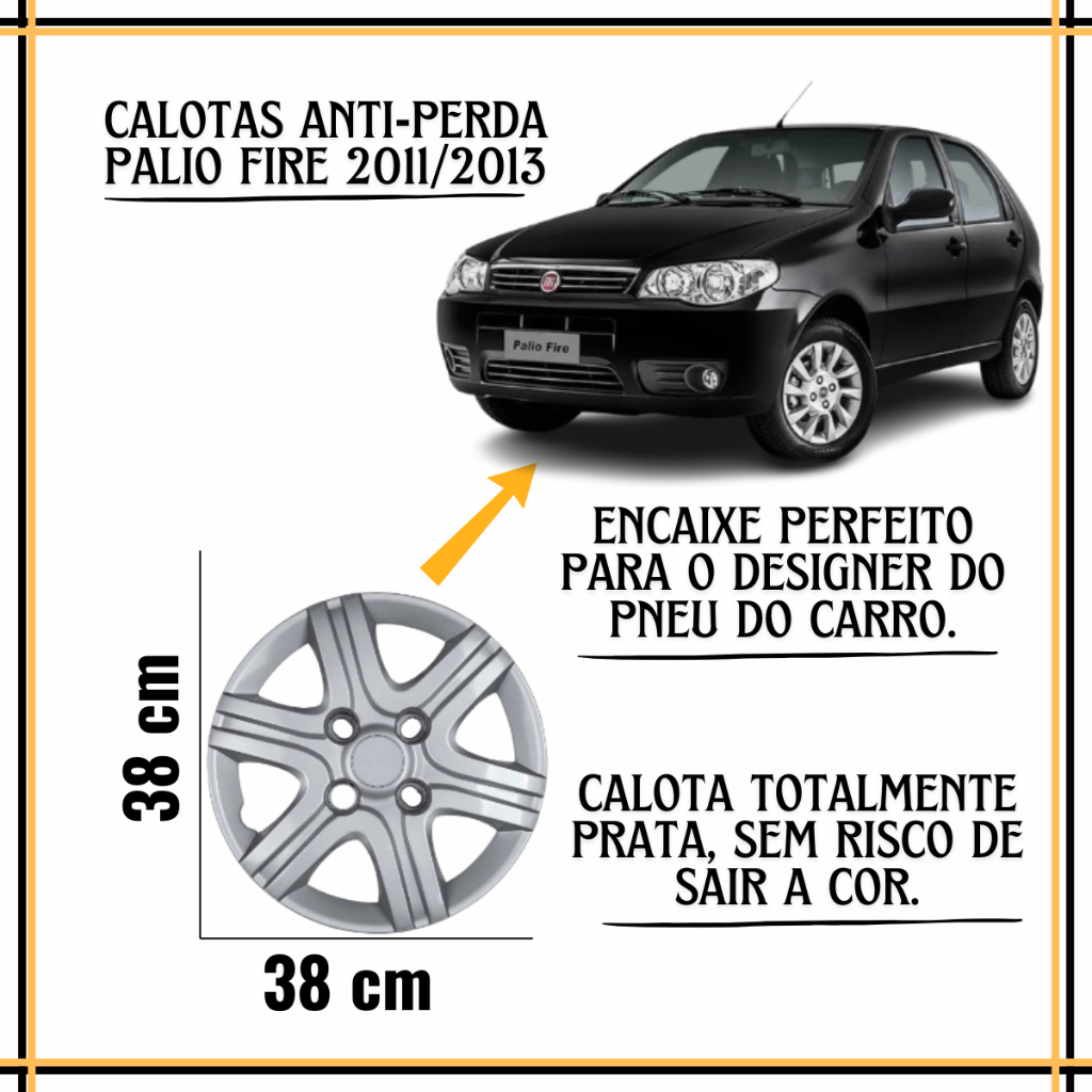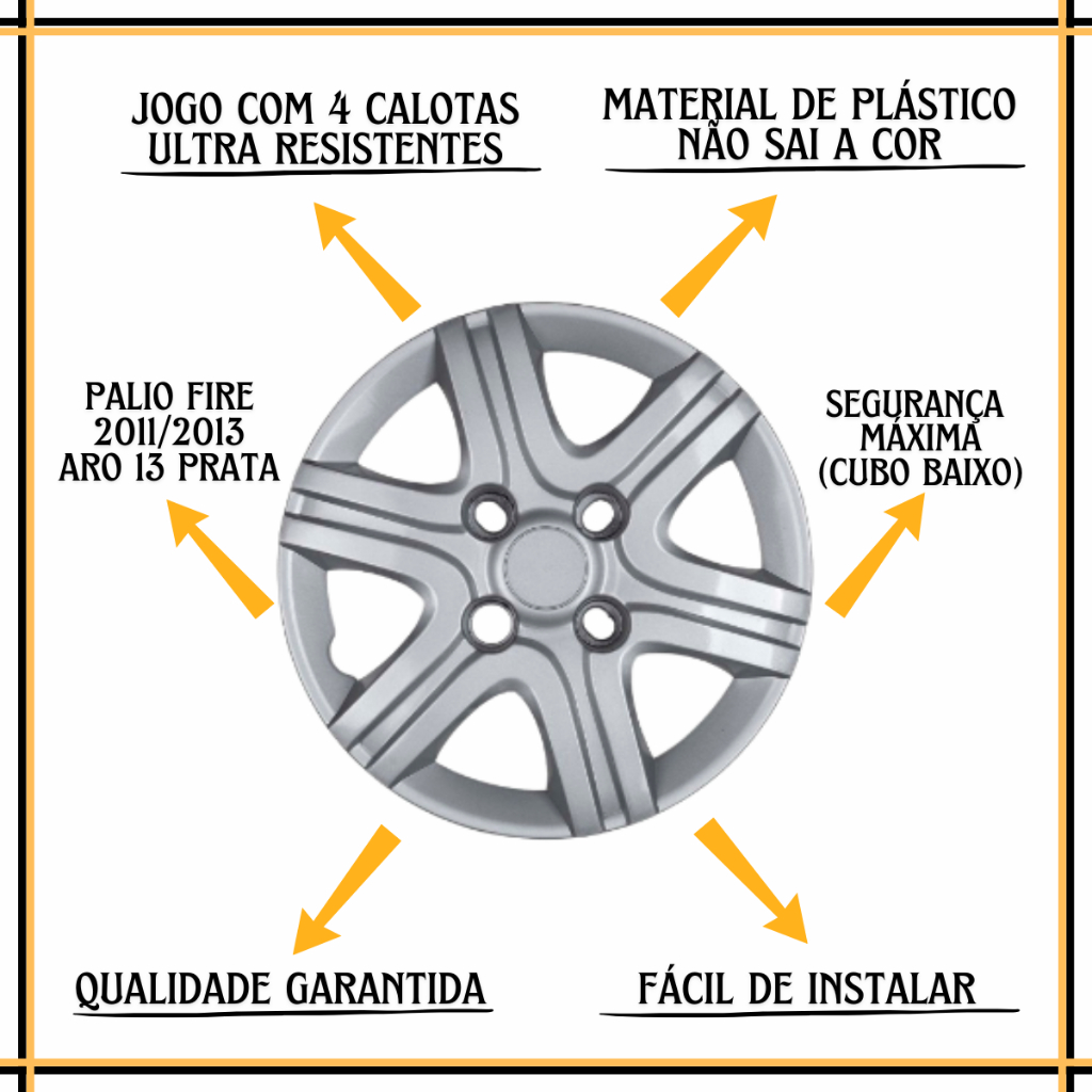 Jogo 4 Calota Aro 13 Fiat Palio Fire 2010 2011 2012 2013 Antiperda Cubo Baixo Prata
