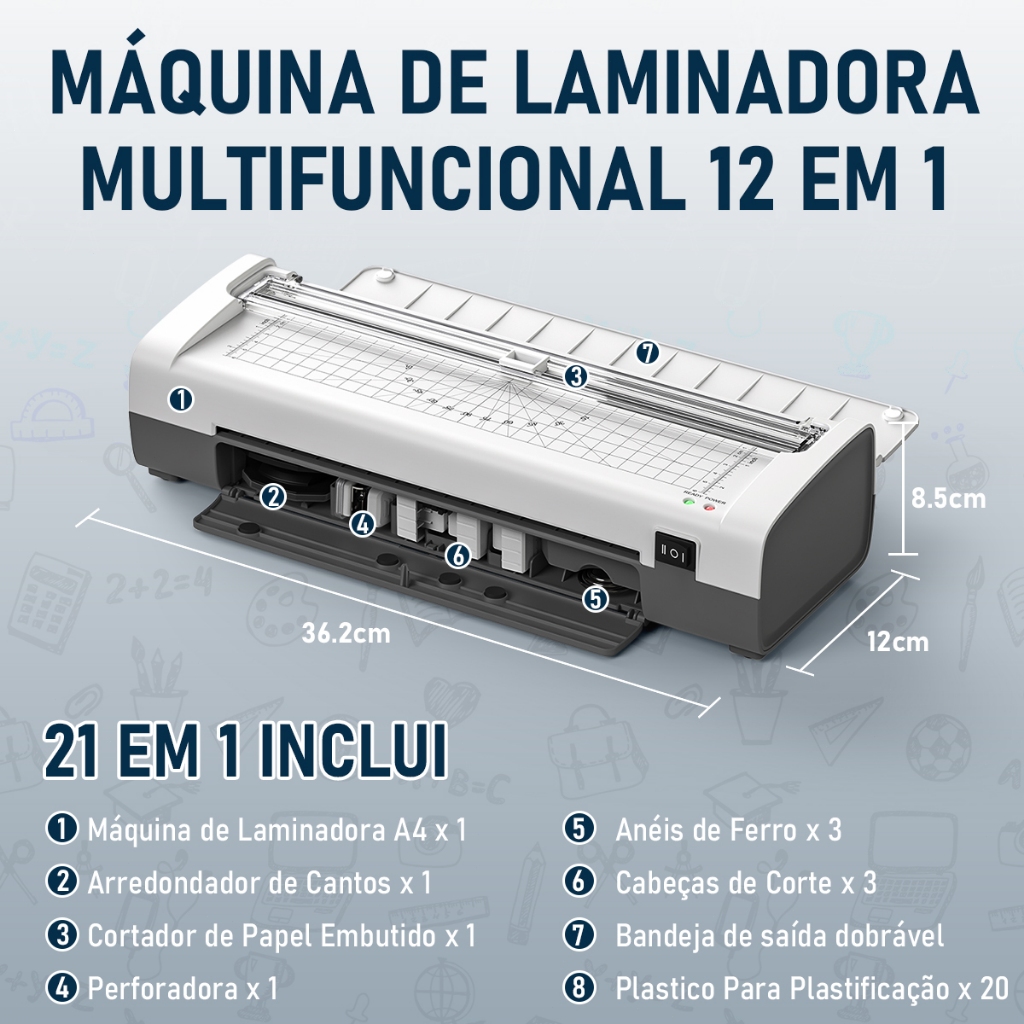 QFUN Plastificadora Laminadora A4 De 9 Polegadas, Quente/fria Plastificadora Com 20 Bolsas De Laminação 127V/220V