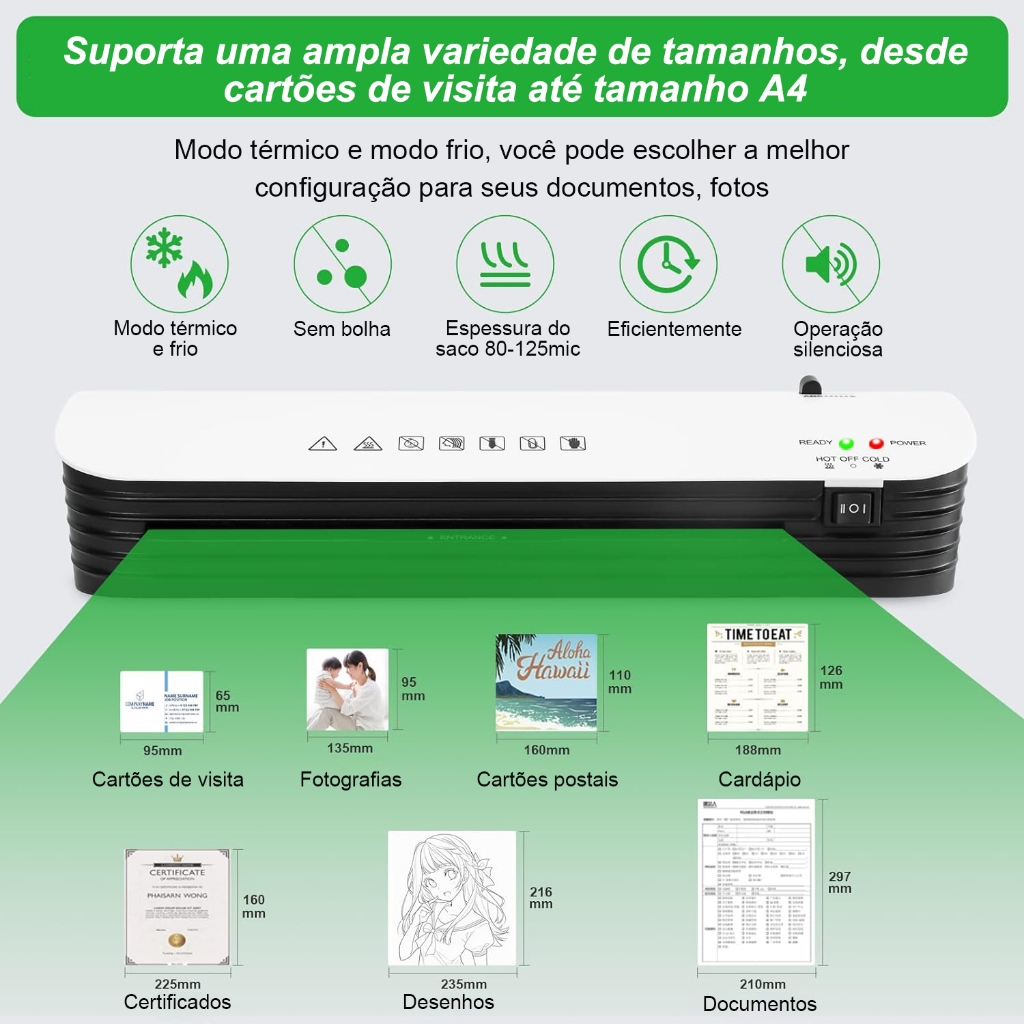 Plastificadora Laminadora A4 Fria/Quente Função Com 9 Bolsas De Plástico Cortador De Papel Abs Anti-atolamento 127V/220V