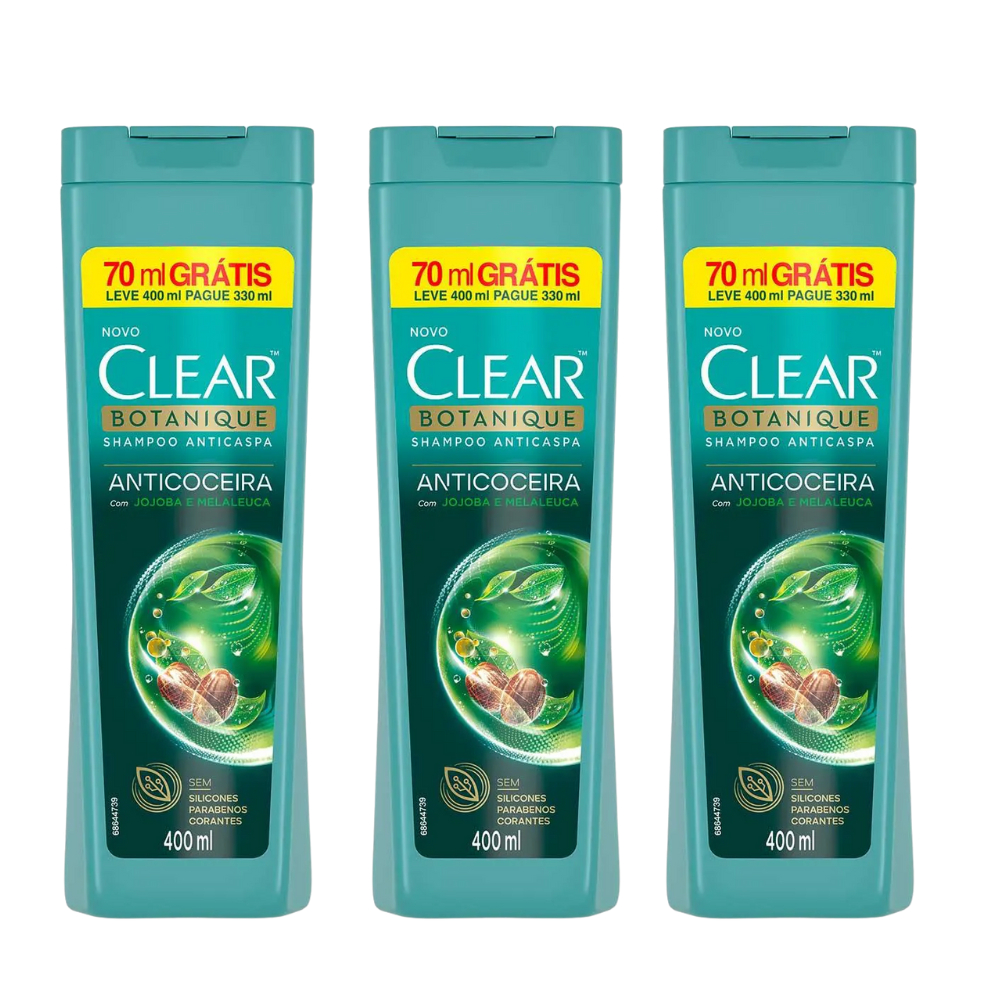 Kit 03 Unidades - Shampoo Clear Men Anticaspa Botanique Anticoceira 400ml | Leve 400ml Pague 330ml