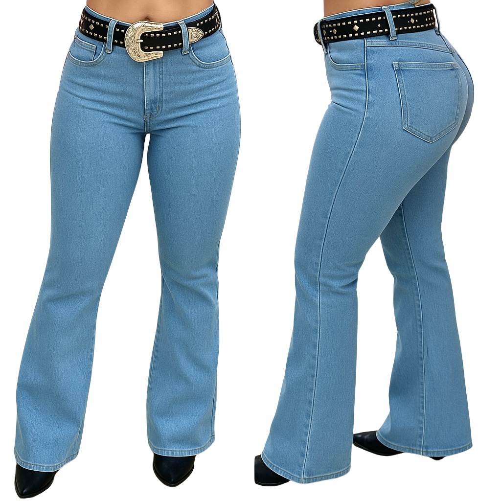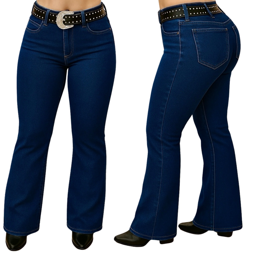 Calça Country Flare Jeans Lisa Feminina Linha Premium Cintura Alta Rodeio Cavalgada