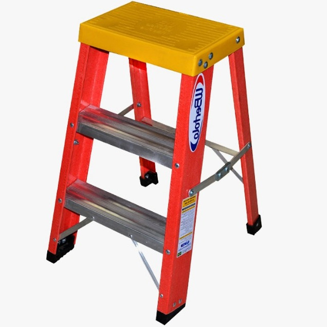 Escada Banqueta Profissional de Fibra de Vidro 60cm - 3 Degraus Amarela Wbertolo