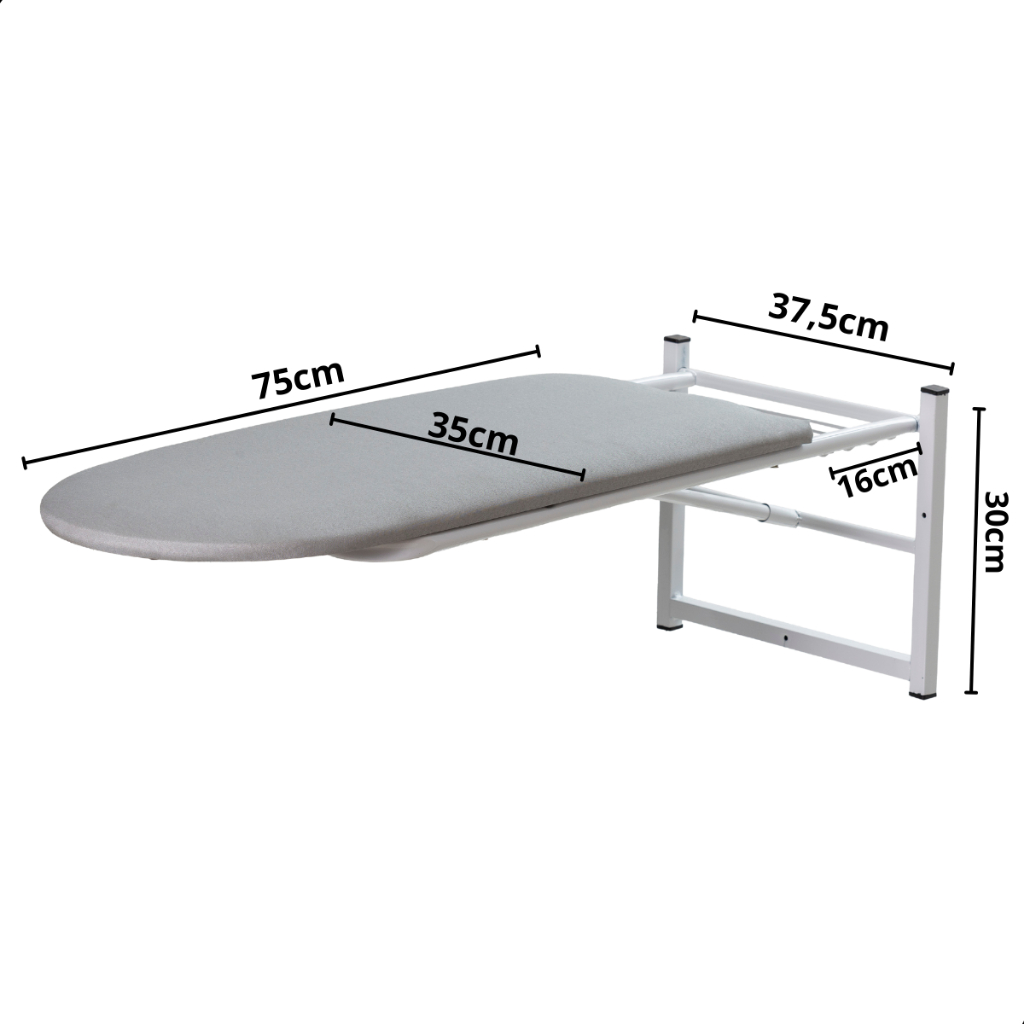 Mesa de Passar Roupa Dobrável de Parede Tábua Compacta Articulada Para Lavanderia e Apartamentos Aço Reforçado