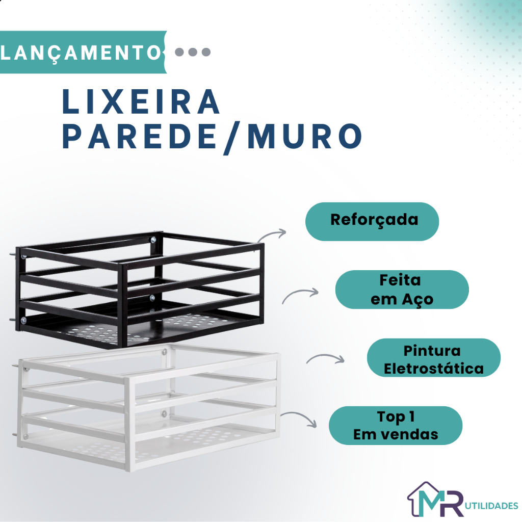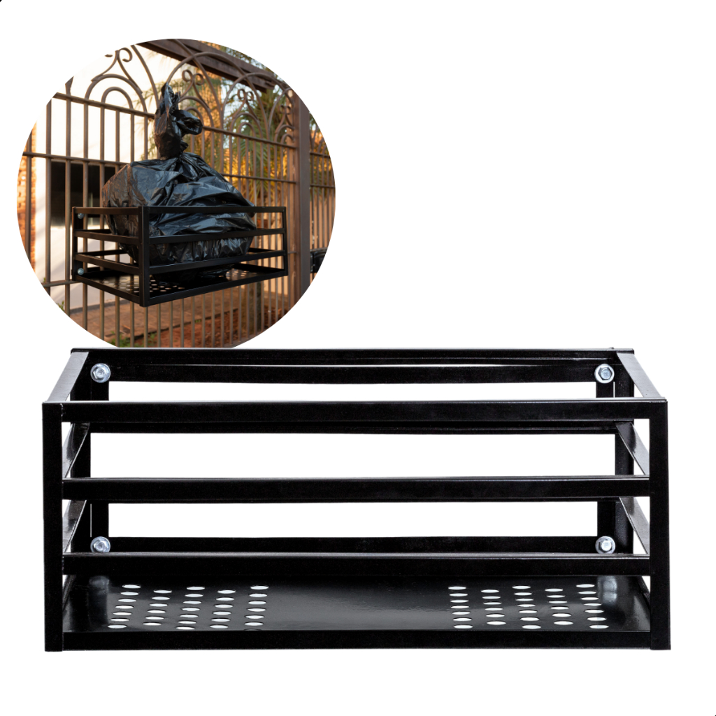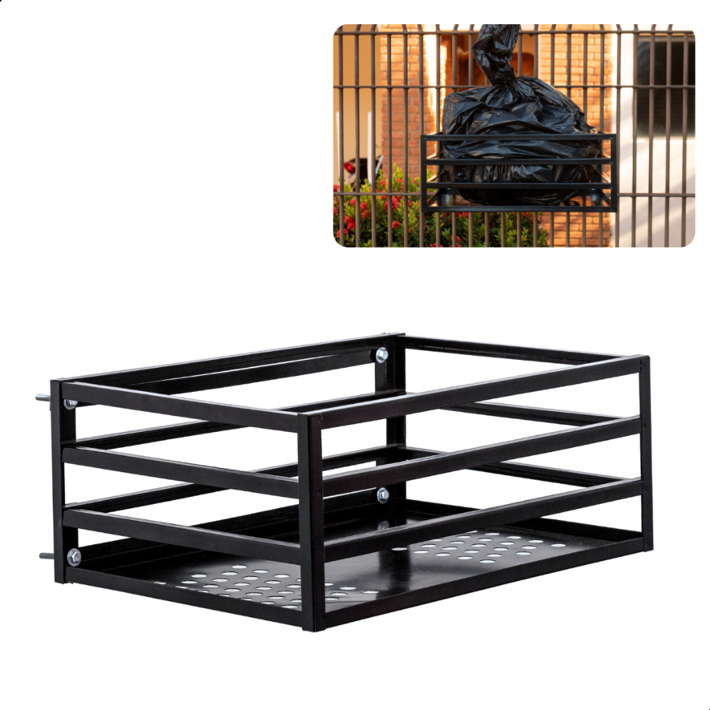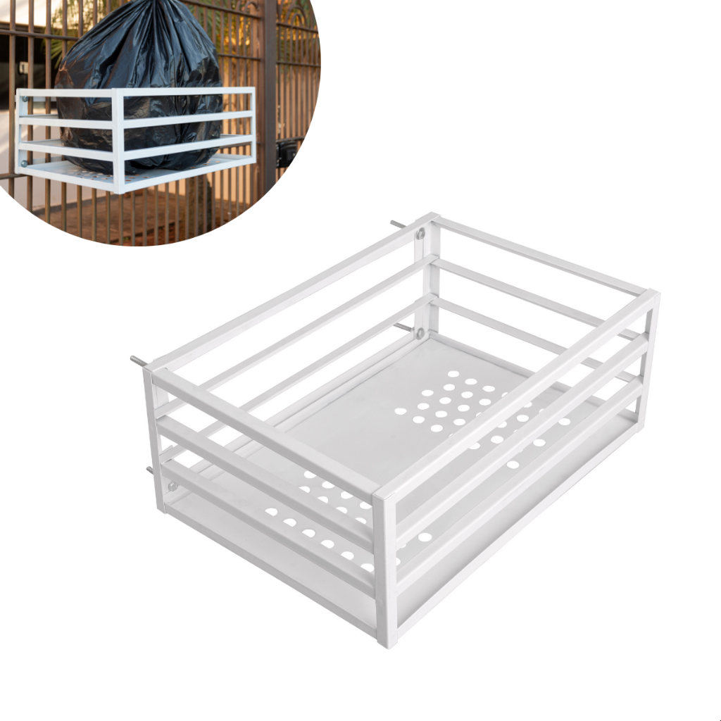 Lixeira Para Muro Portão Parede Grade Suspensa Tela Aço Reforçado Pintura Anticorrosiva Preta Branca (Envio Imediato)