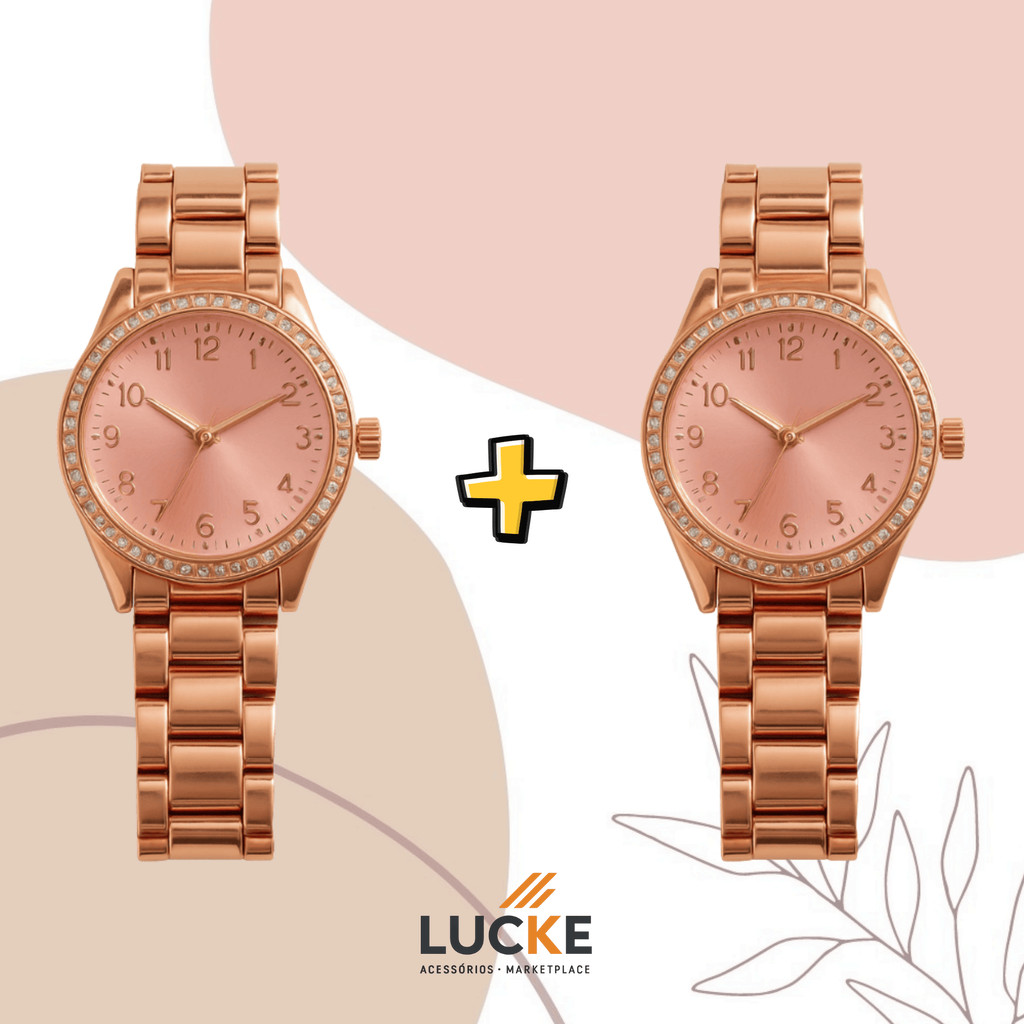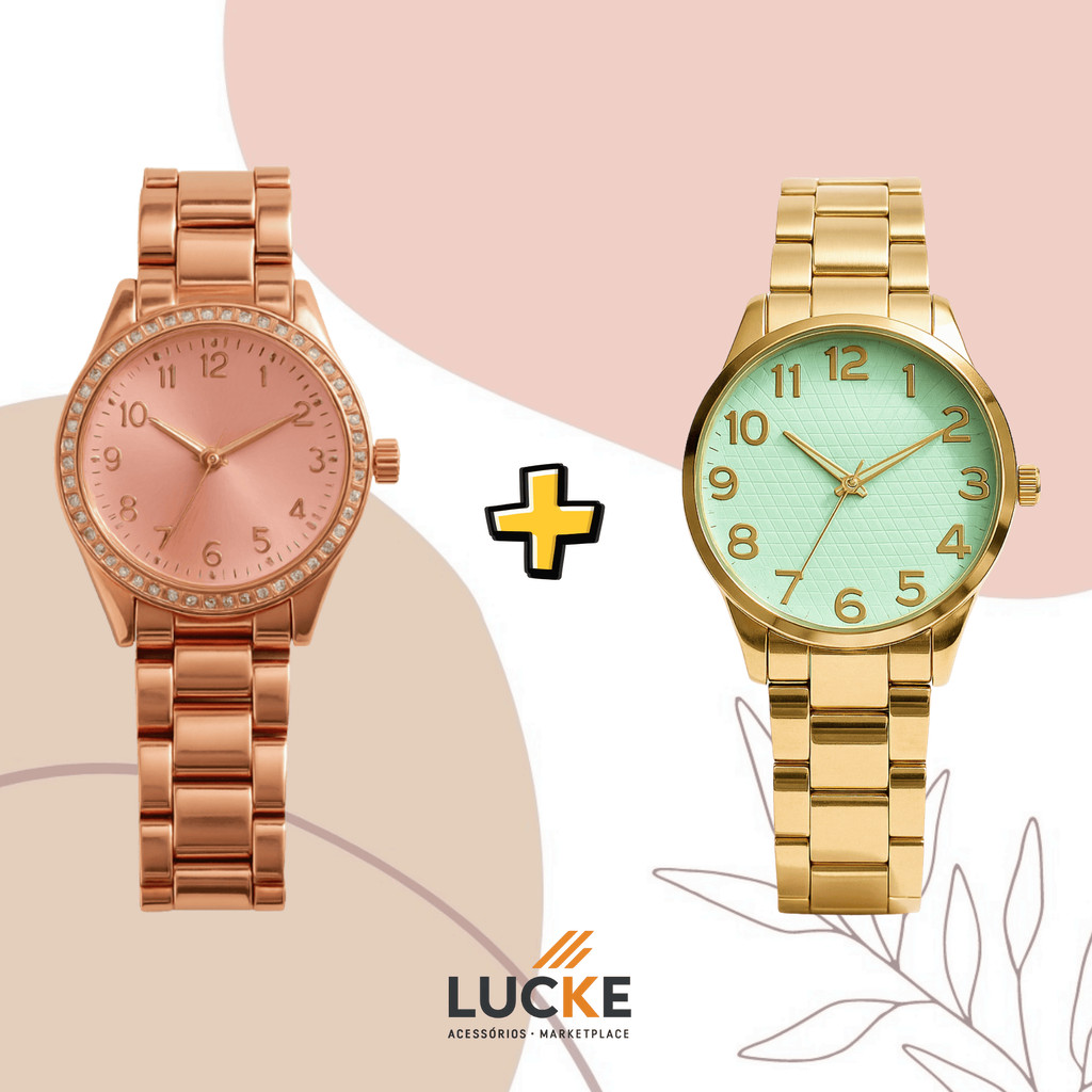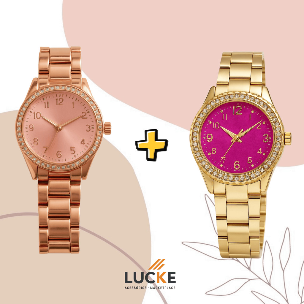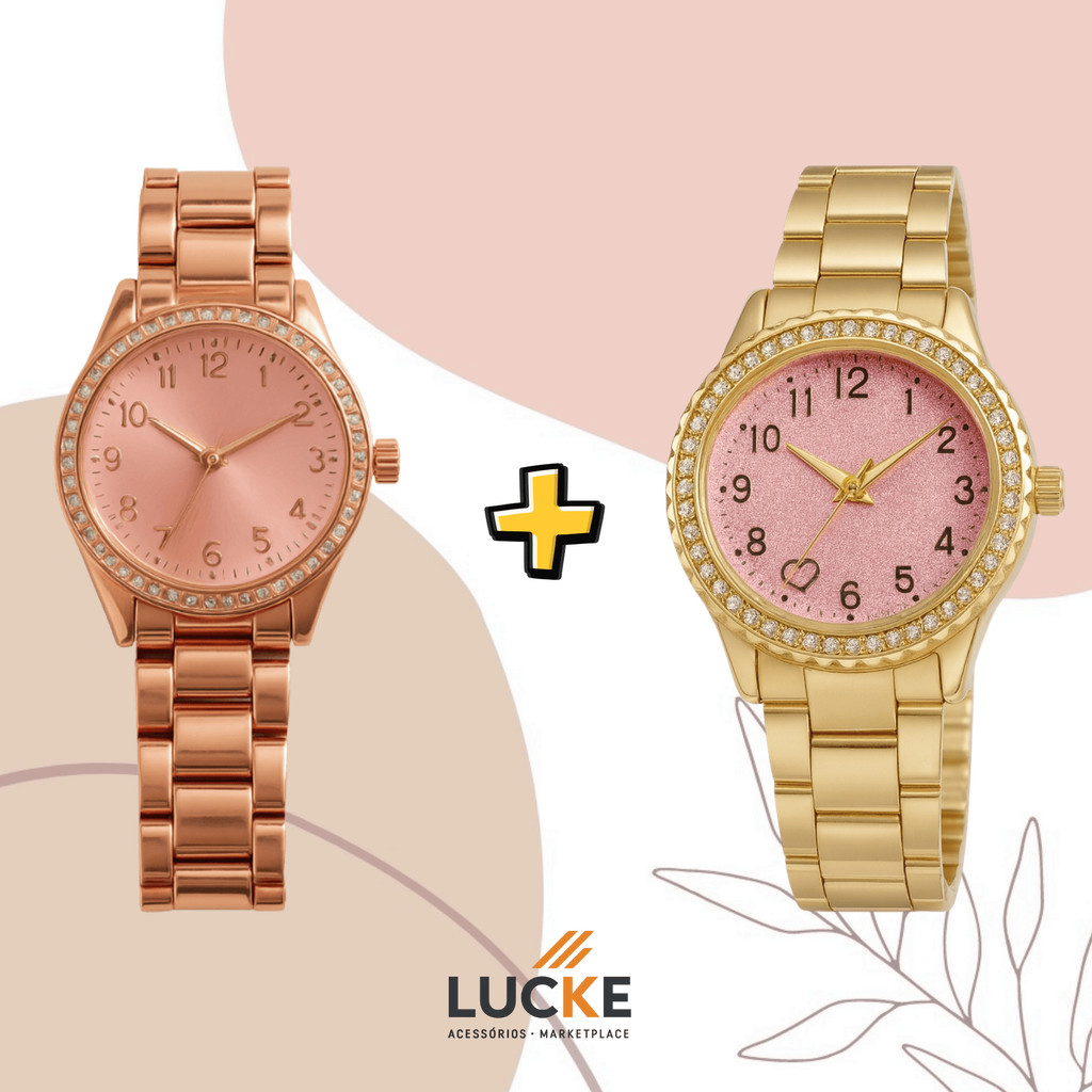 2 Relógios Femininos, Prata, Rose e Dourado Banhado a Ouro 18K Quartzo em Aço Inoxidável.