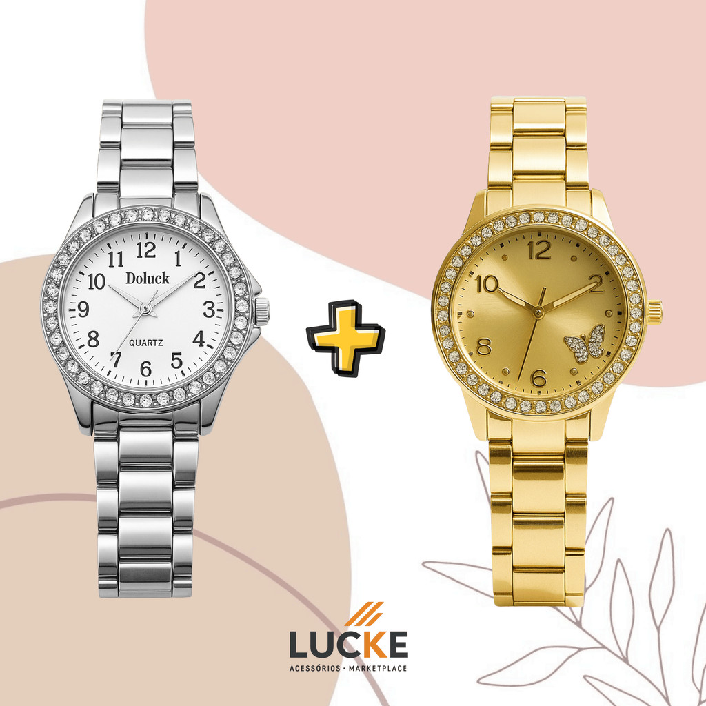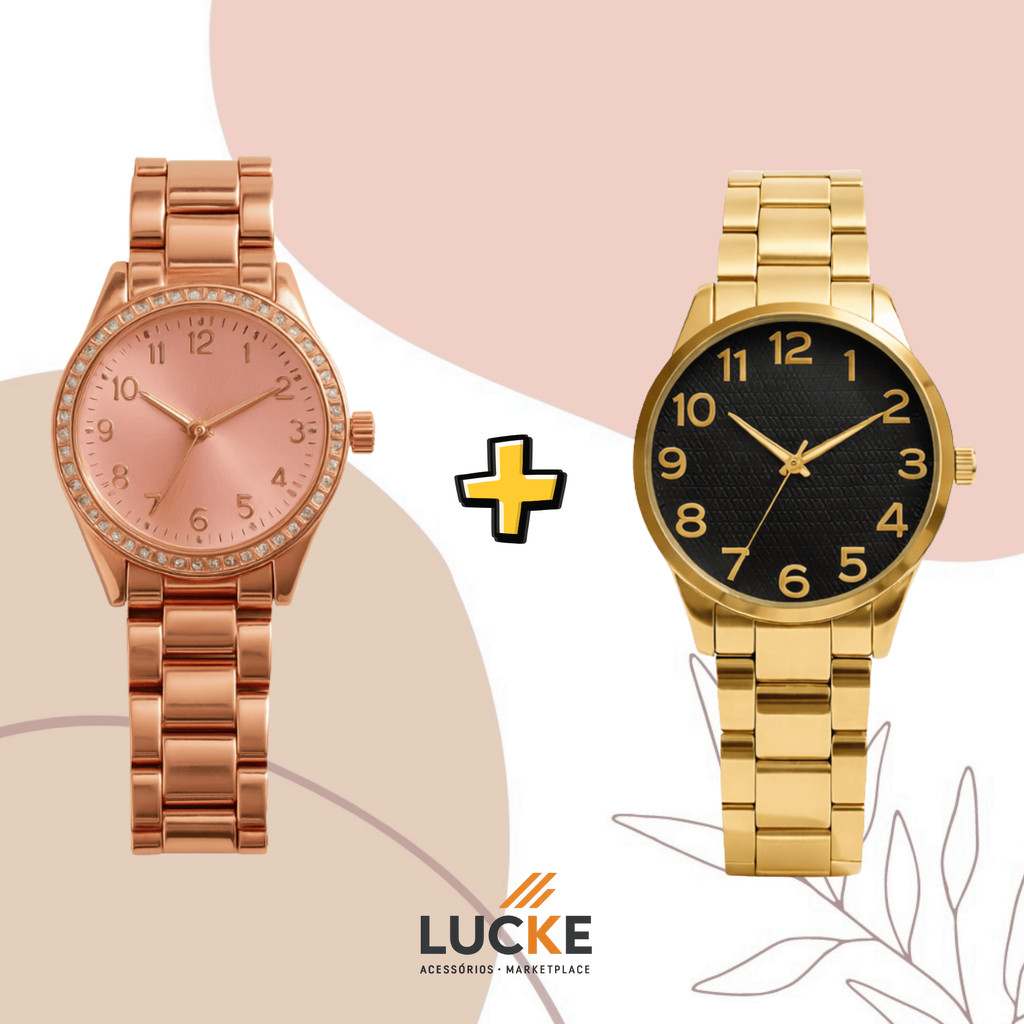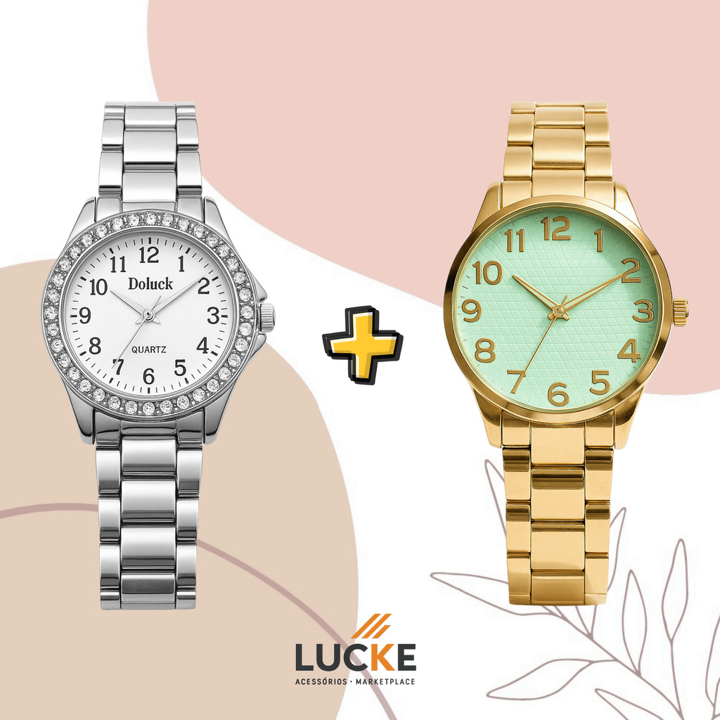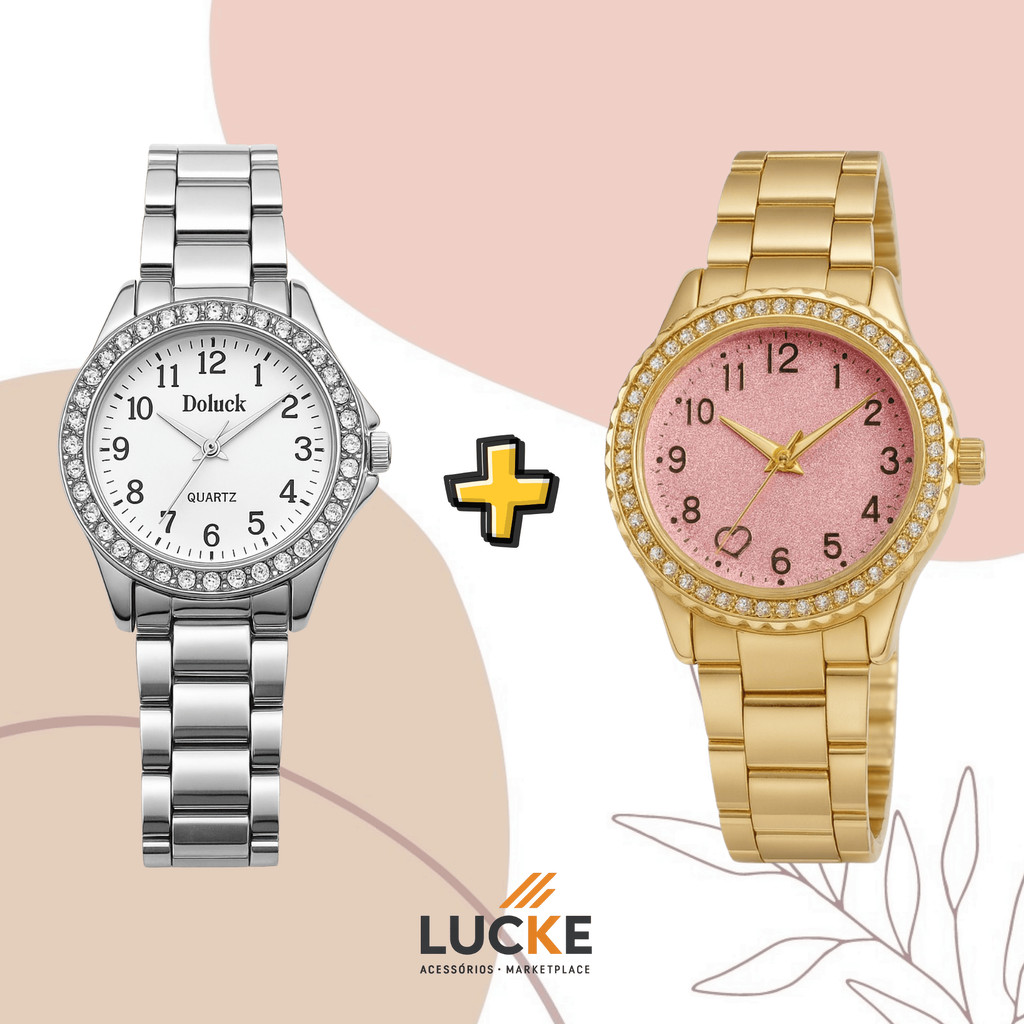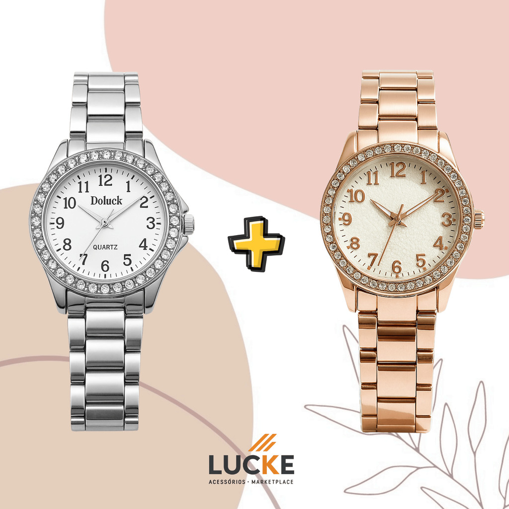 2 Relógios Femininos, Prata, Rose e Dourado Banhado a Ouro 18K Quartzo em Aço Inoxidável.