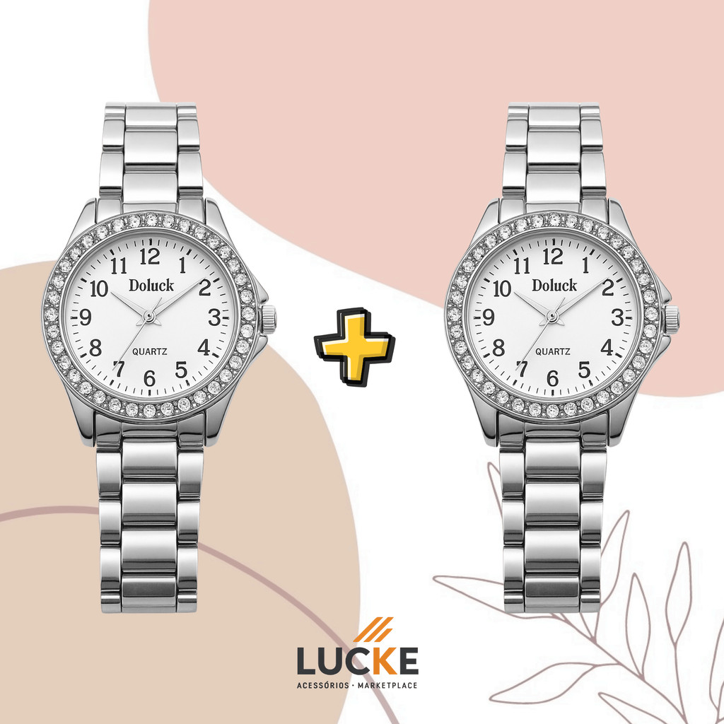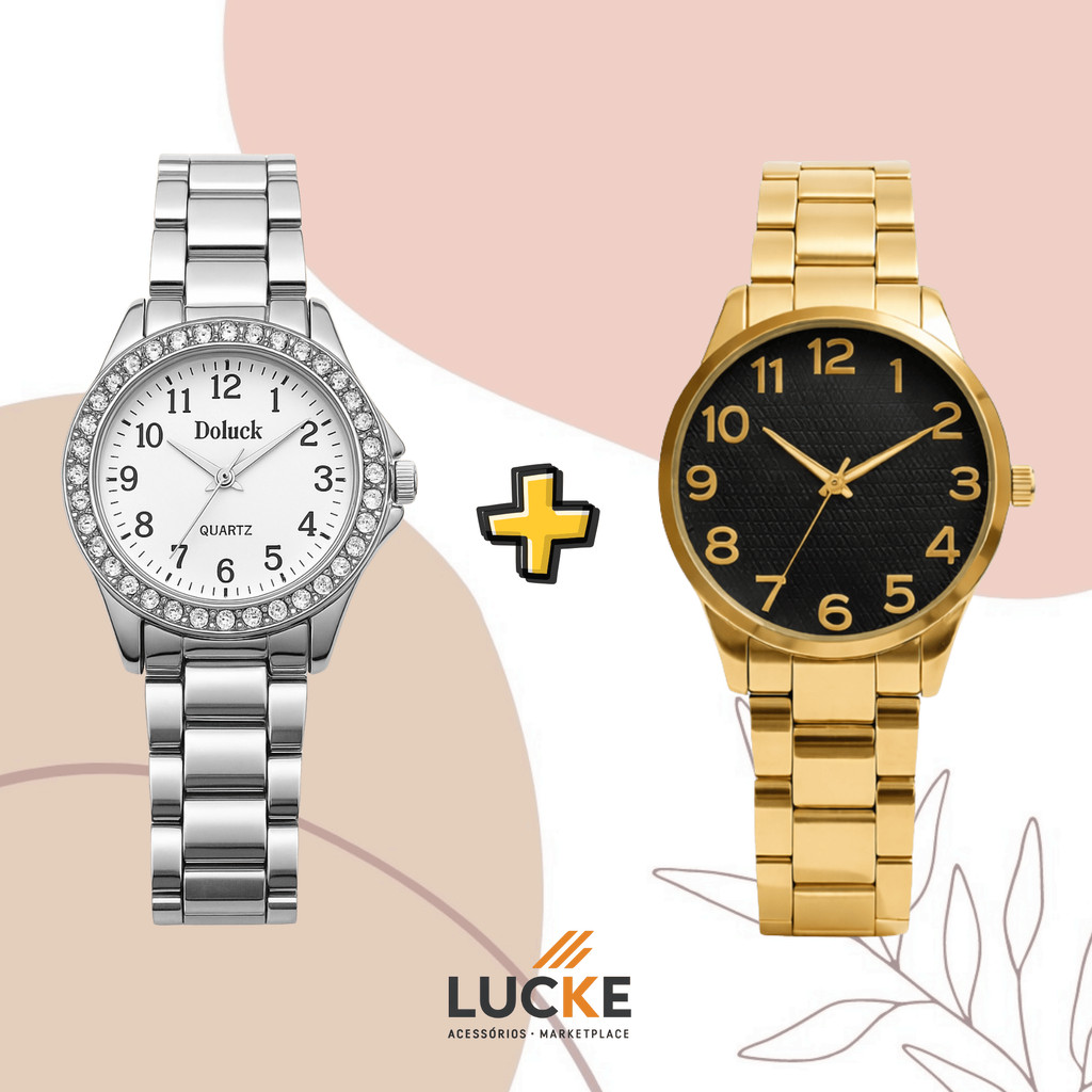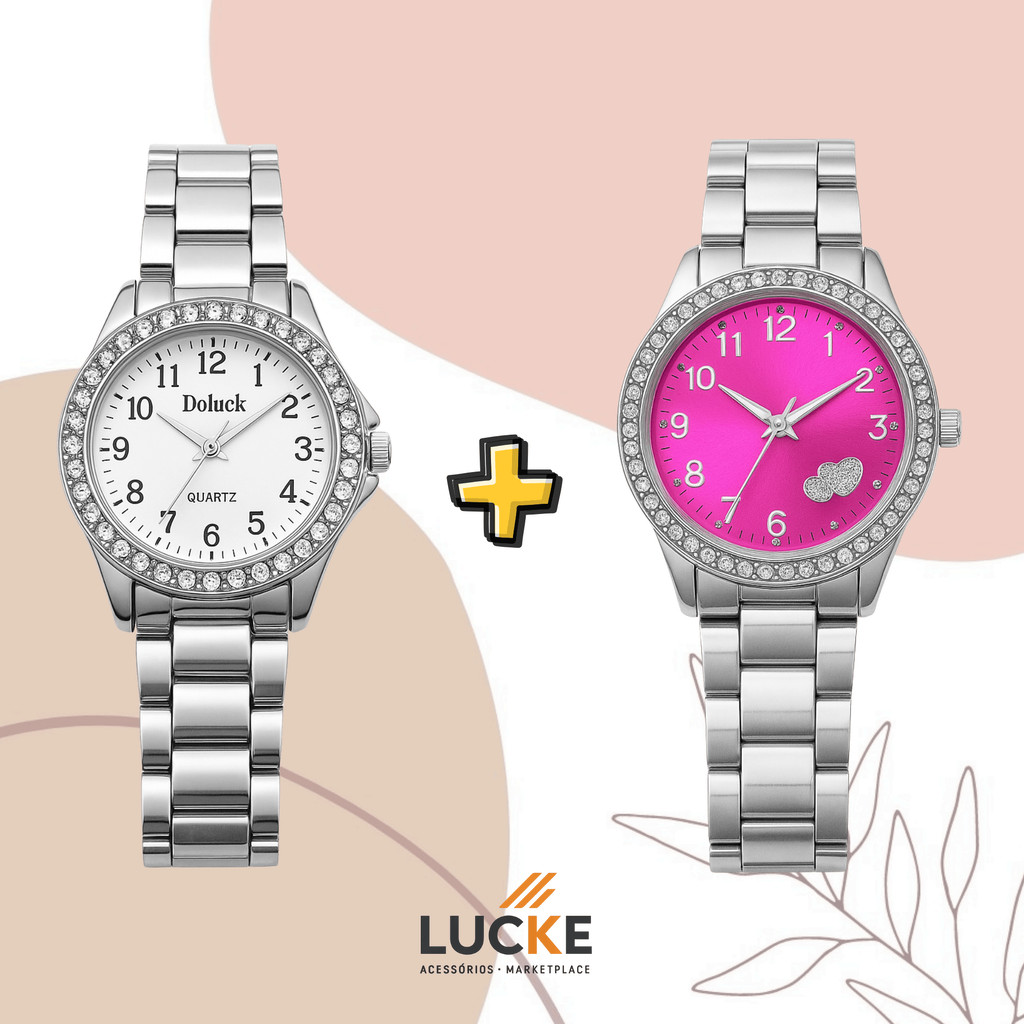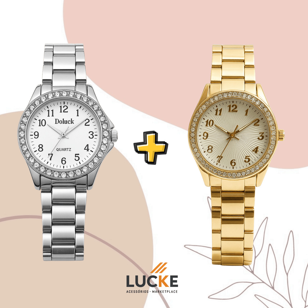 2 Relógios Femininos, Prata, Rose e Dourado Banhado a Ouro 18K Quartzo em Aço Inoxidável.