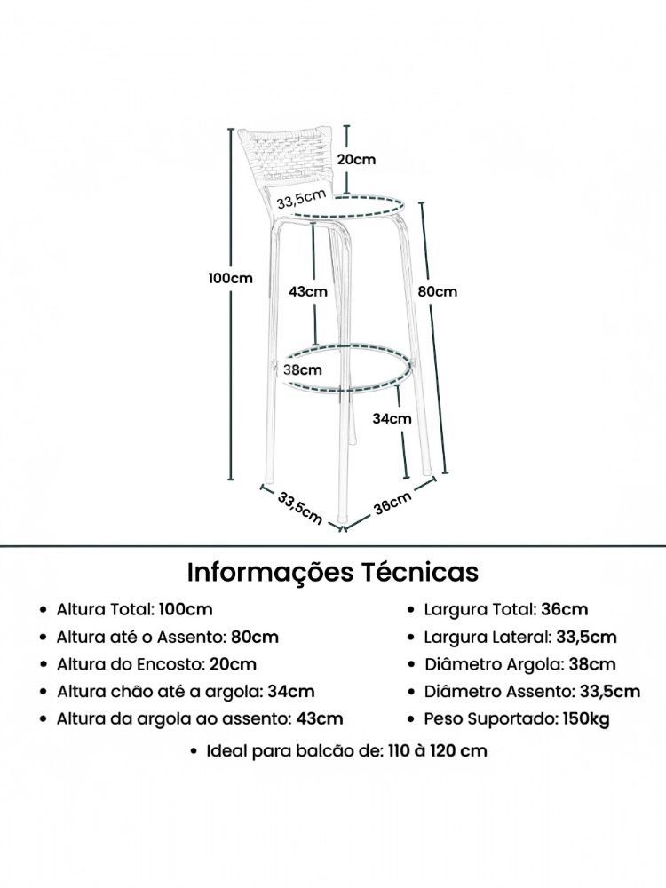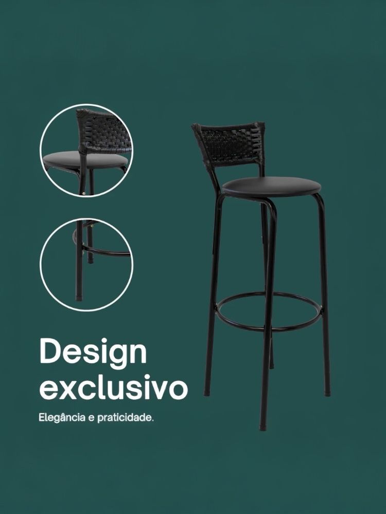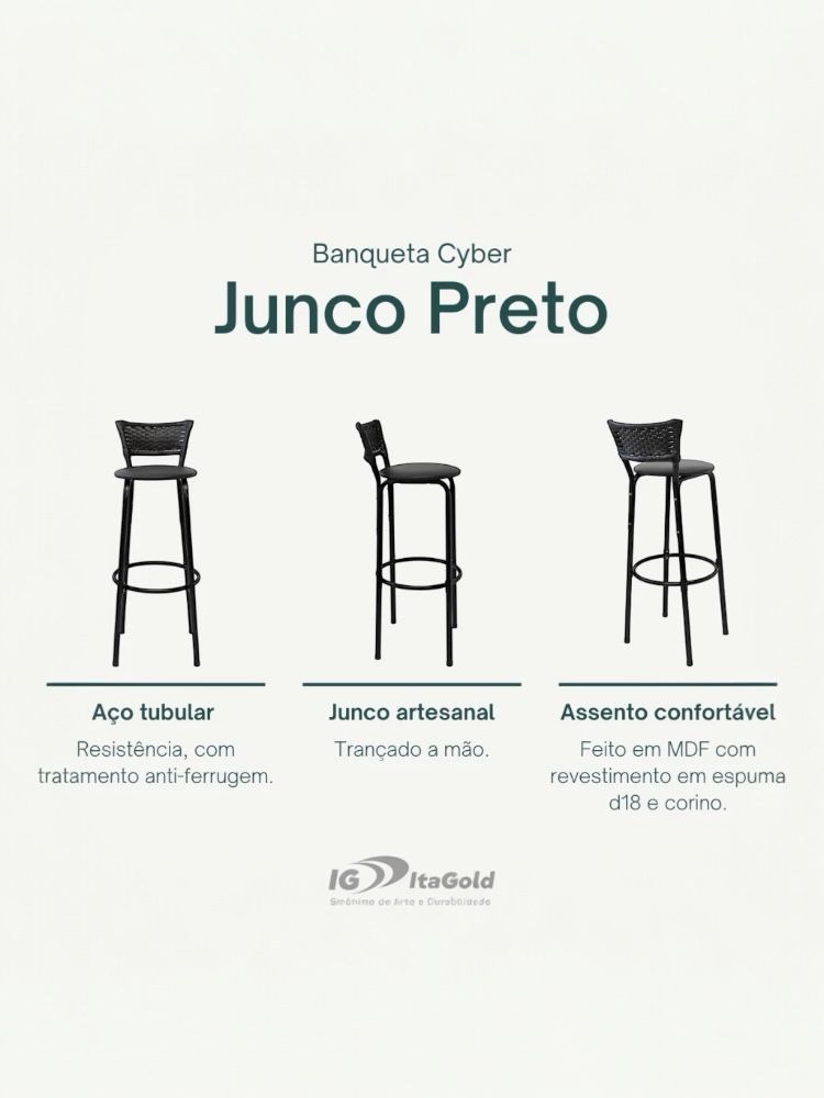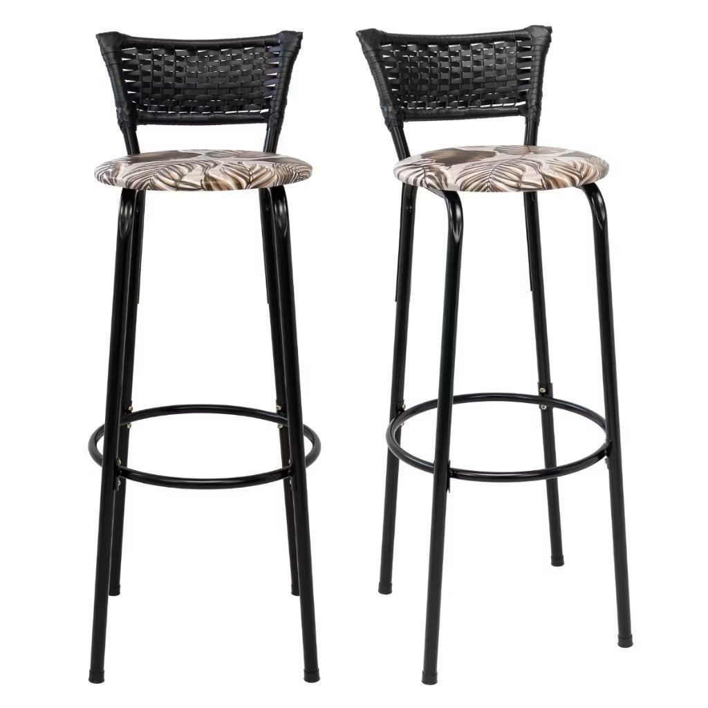 2 Banco Alto 80cm do Chão ao Assento Banqueta Americana Cozinha Gourmet de Junco