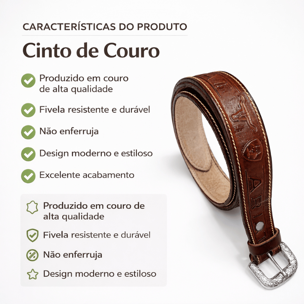 Cinto Country de Couro com Fivela Detalhada Modelo Ariat