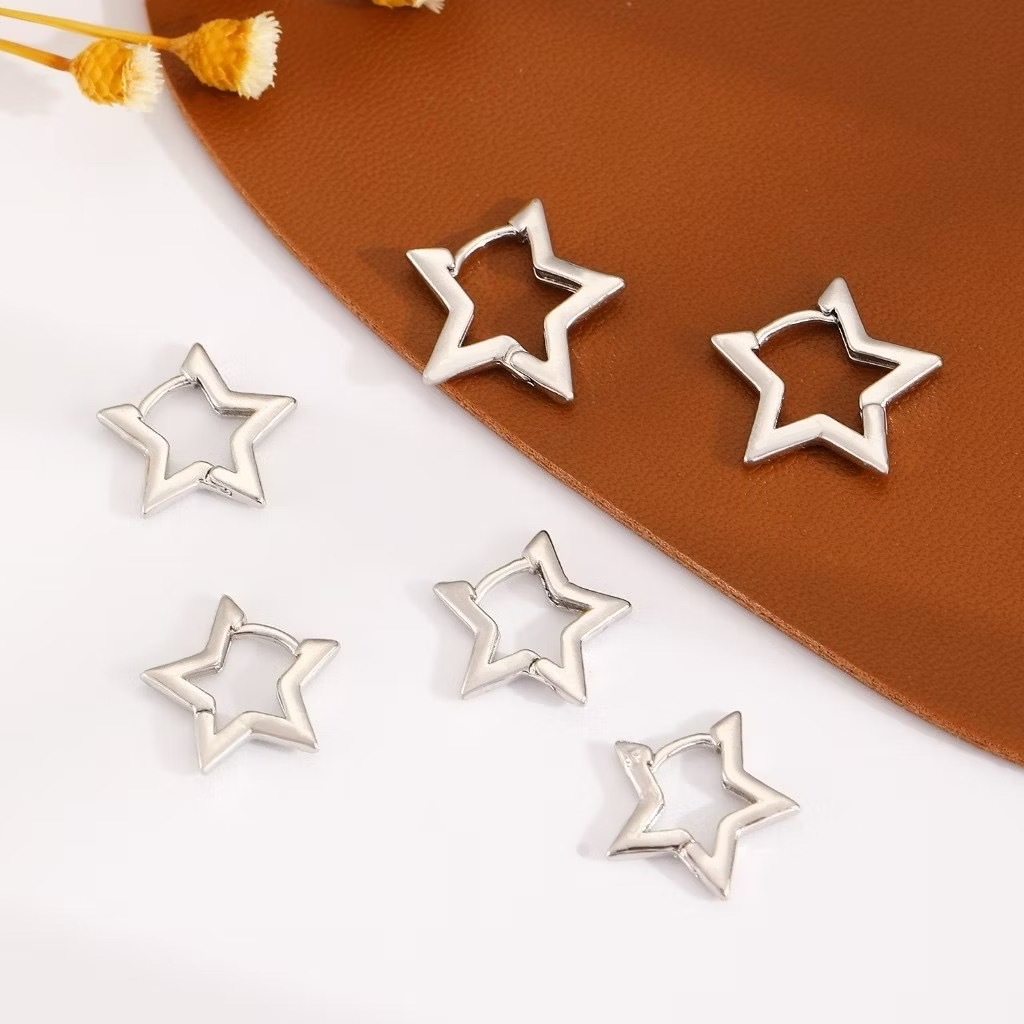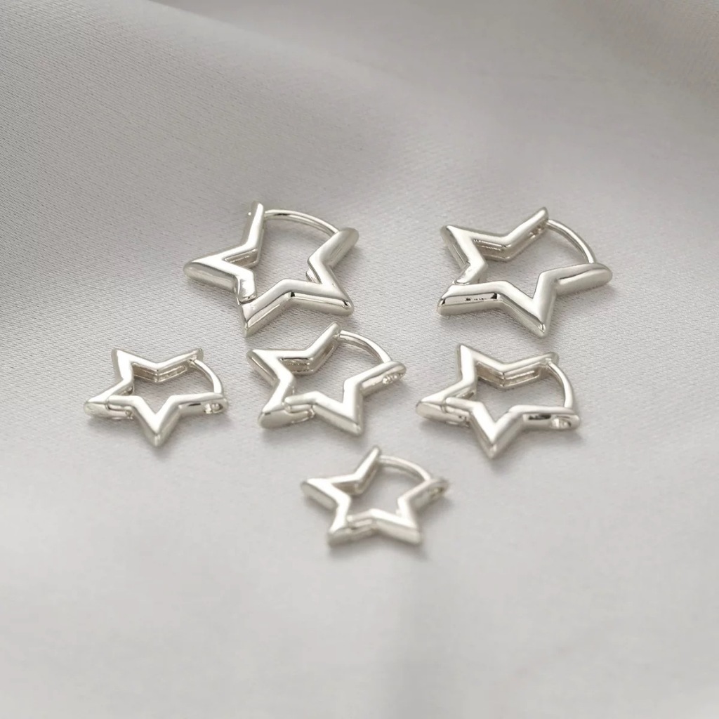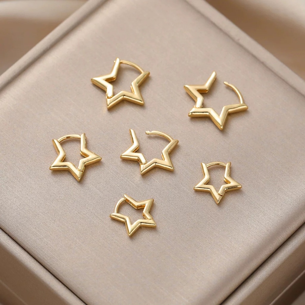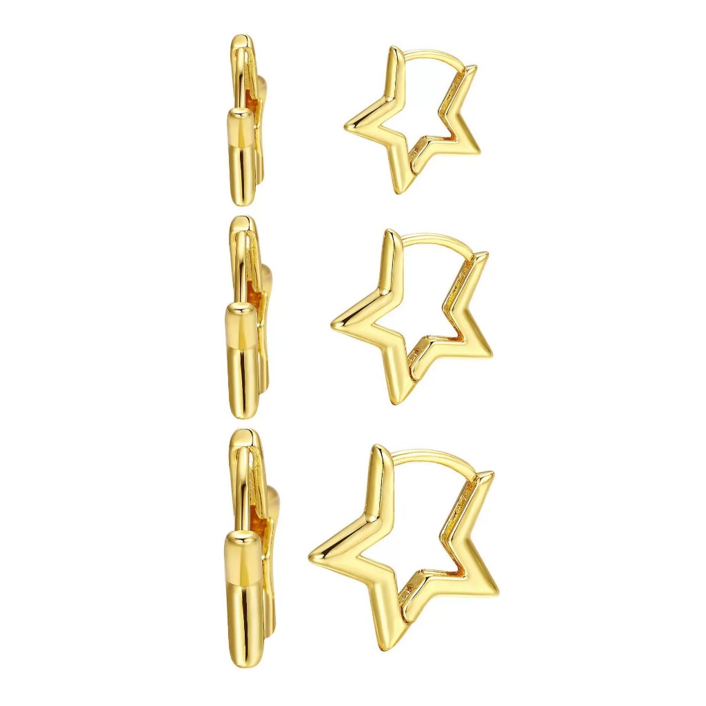 Brinco Trio Estrela Lisa BANHADA Ouro 18K a prata 925 antialérgica