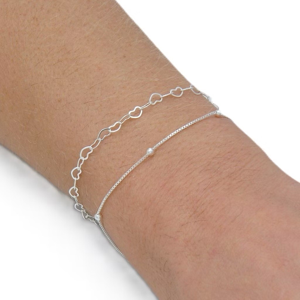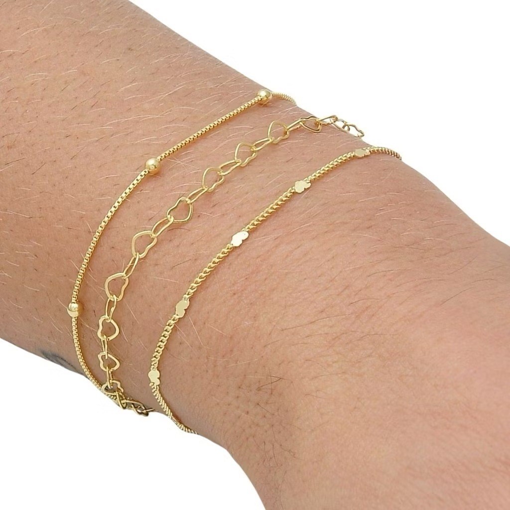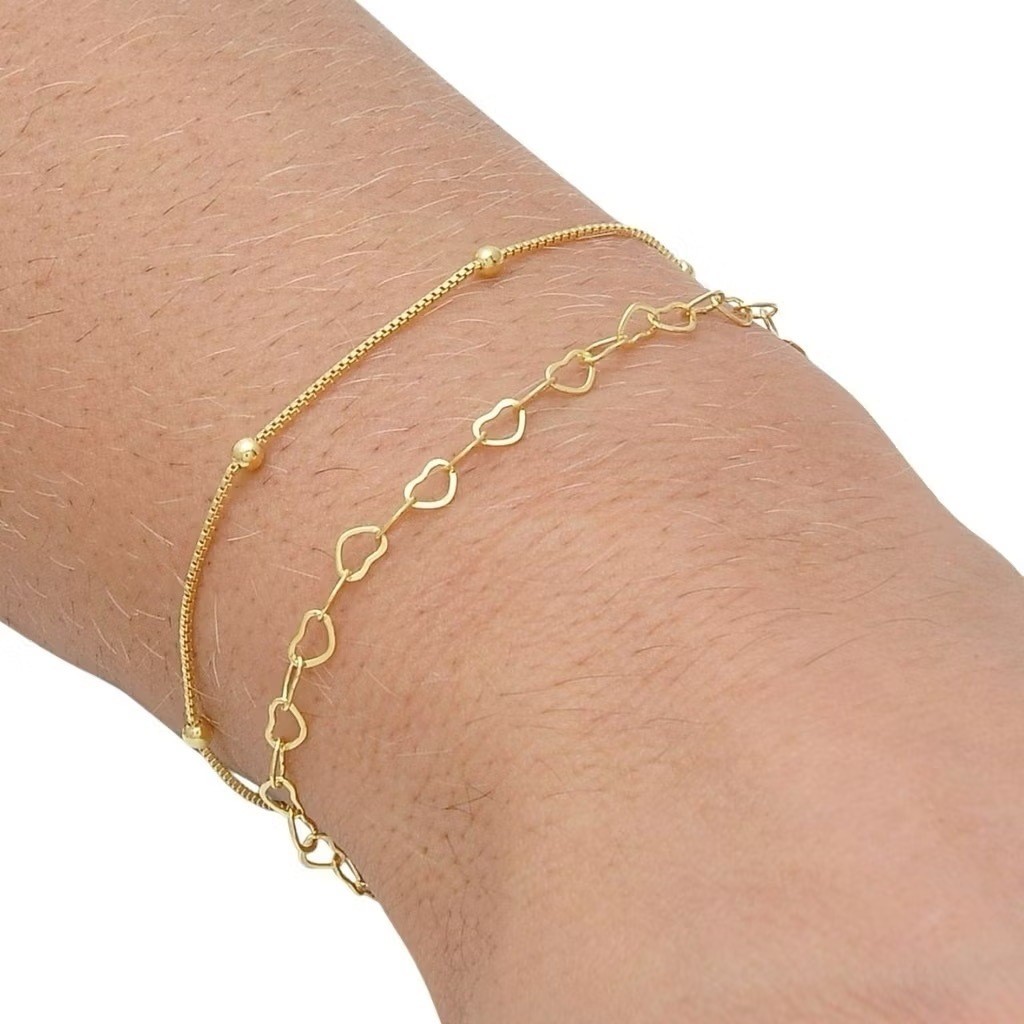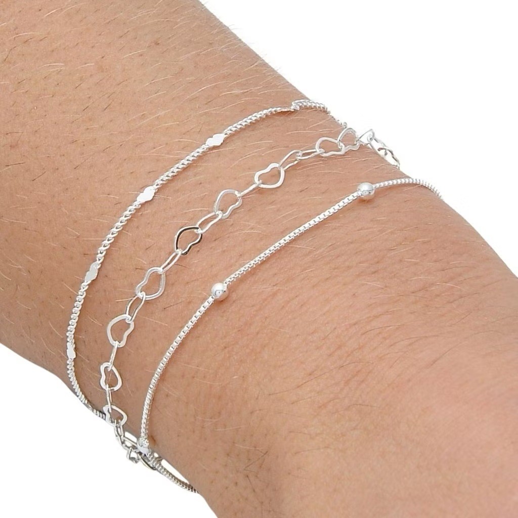 Kit 4 pulseiras elegantes femininas com formato de coração vazado, banhadas a prata 925 ou ouro 18K