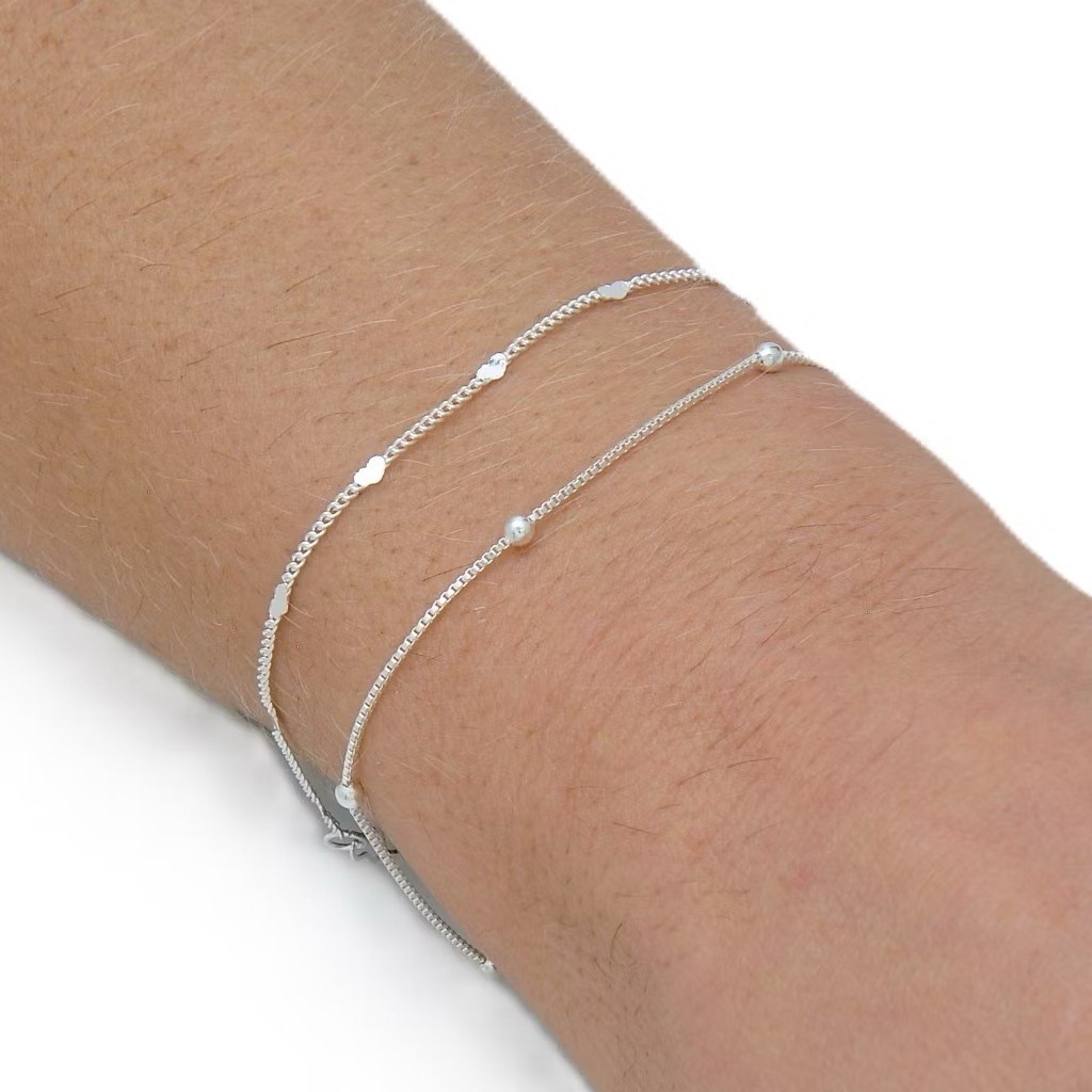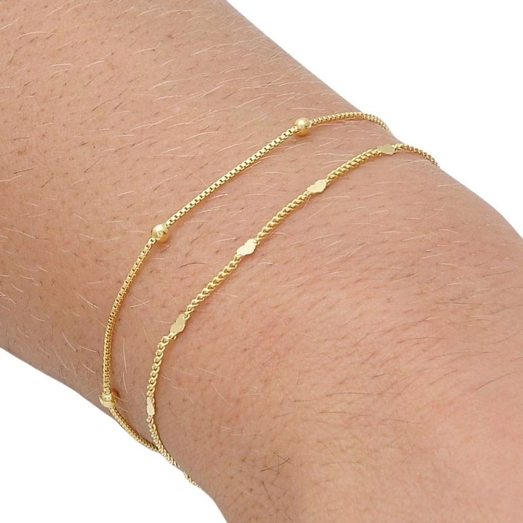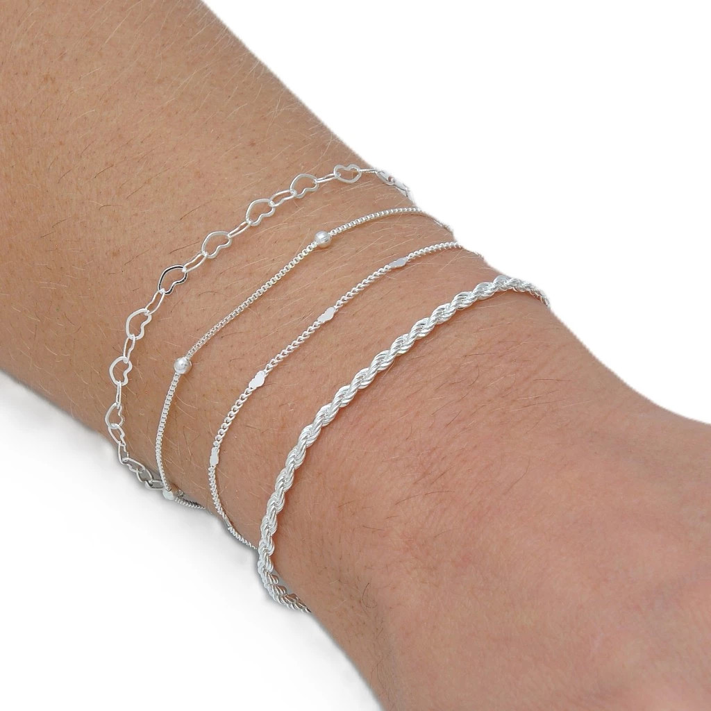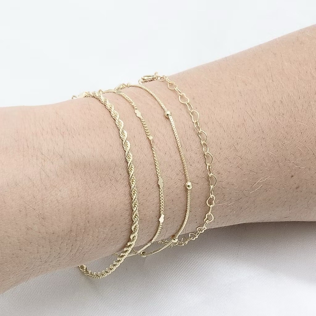Kit 4 pulseiras elegantes femininas com formato de coração vazado, banhadas a prata 925 ou ouro 18K