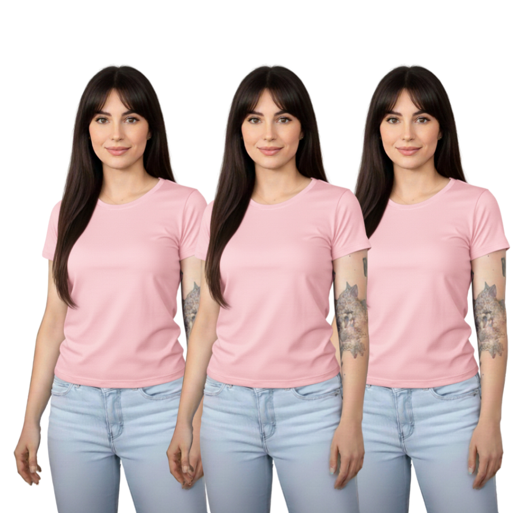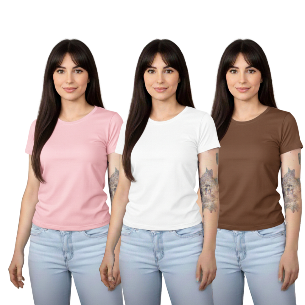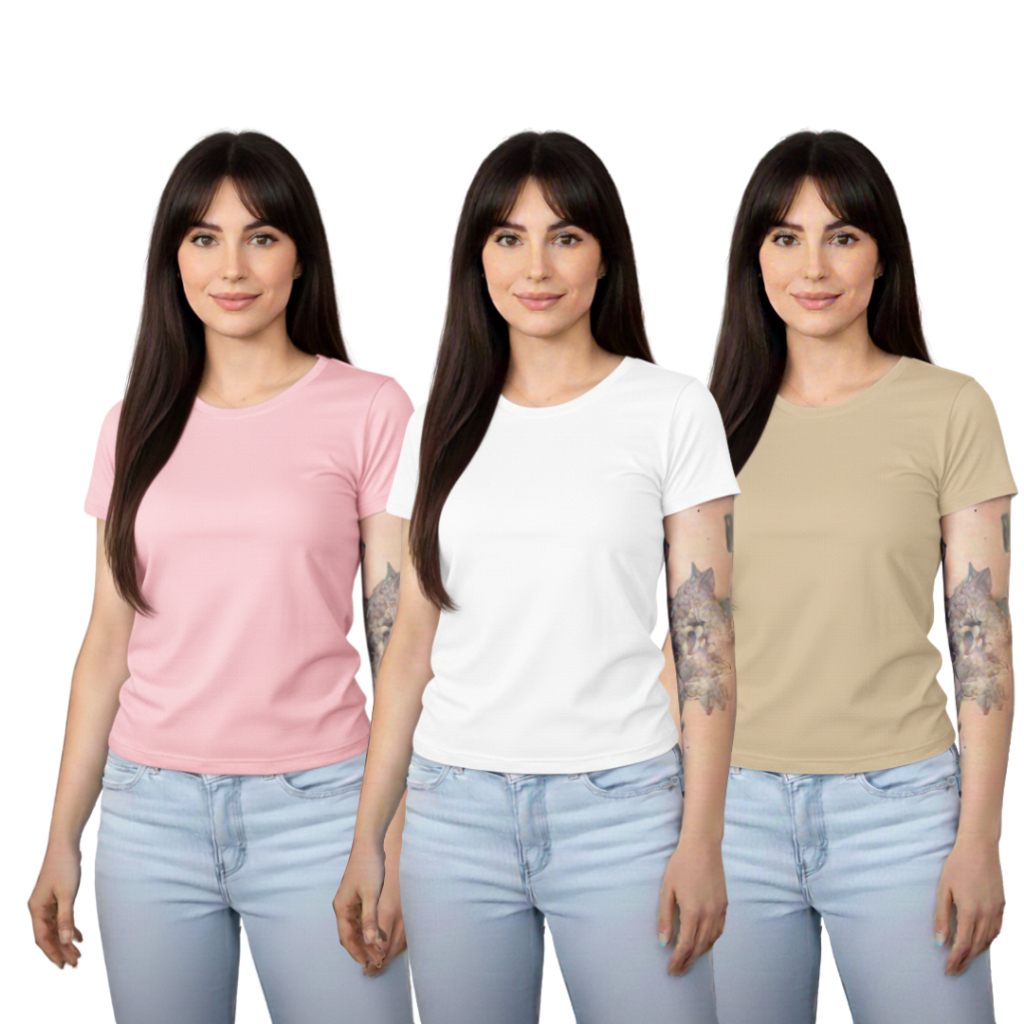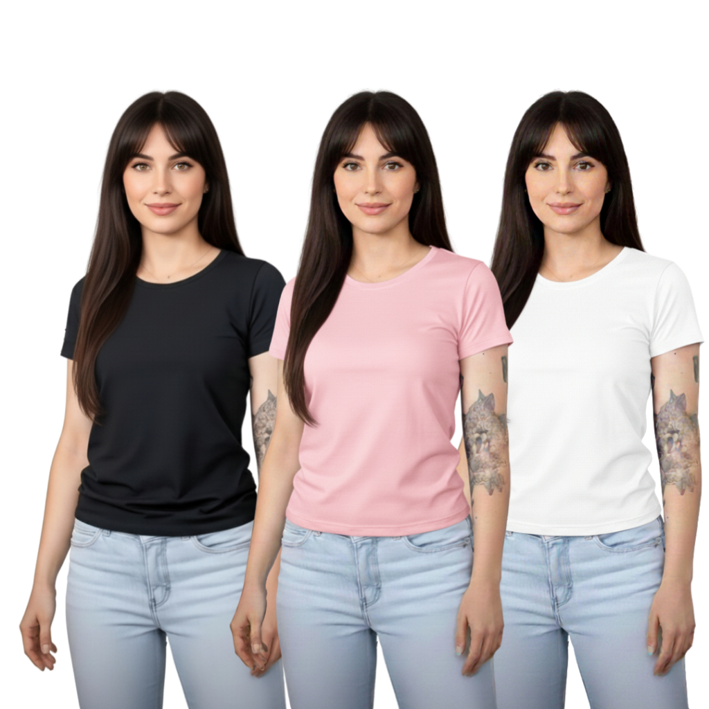 Kit 3 Baby Look Femininas 100% Algodão – Básicas Premium