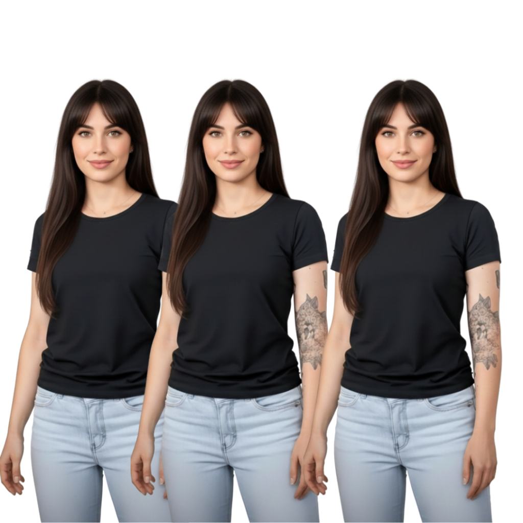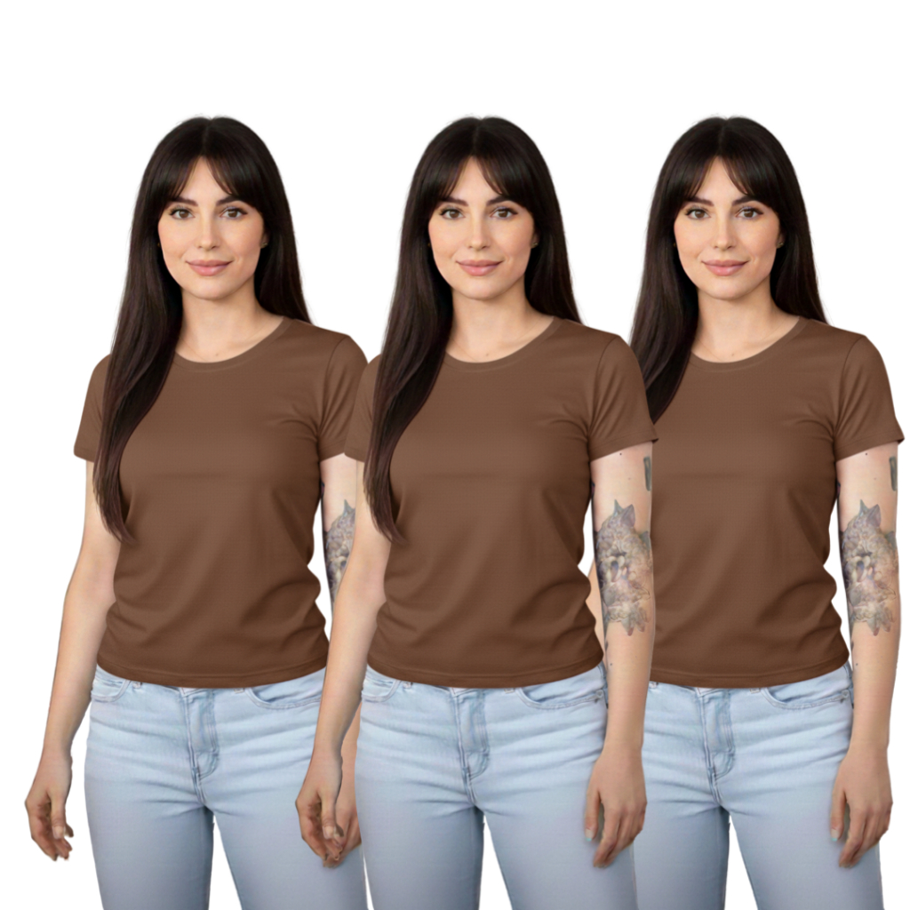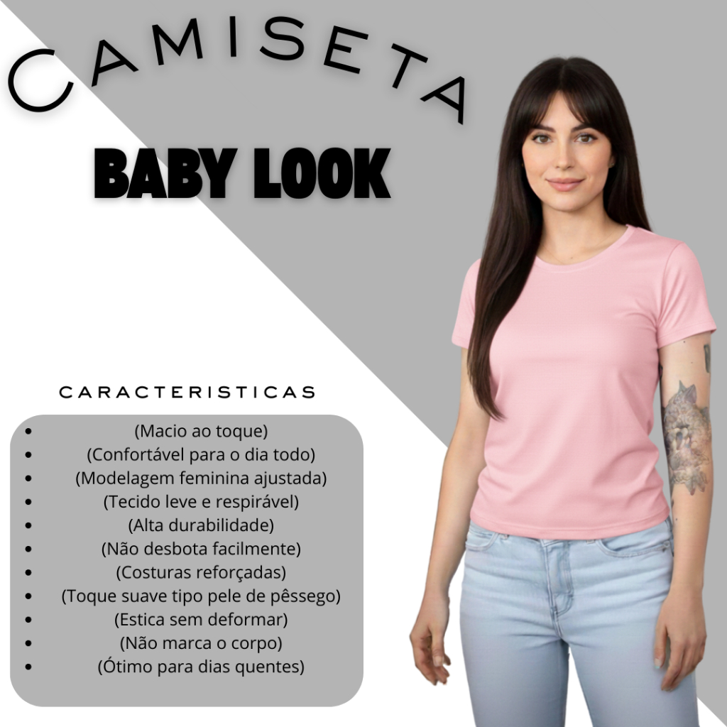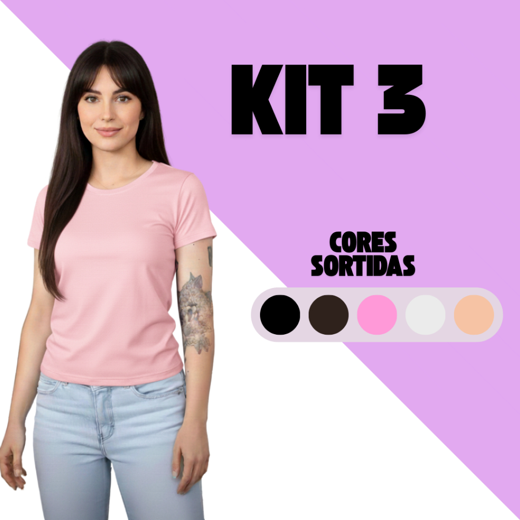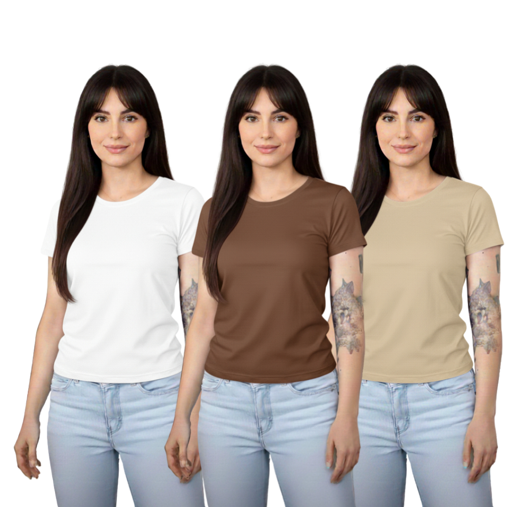 Kit 3 Baby Look Femininas 100% Algodão – Básicas Premium